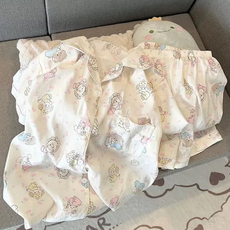 Pajamas Women's Summer Clouds Cotton New Sweet Cute Cardigan Casual Short Sleeve Shorts Home Clothes suit