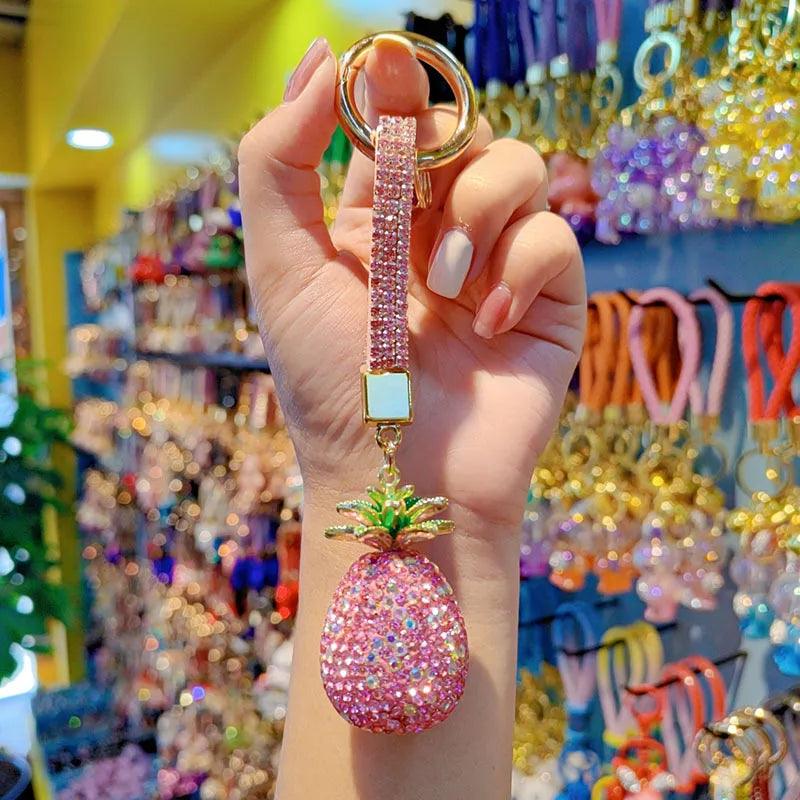 Pineapple Design Full Drill Ceramic Keychain Couple Bag Charm Chain Ring Lanyard Christmas Valentine's Day New Year Gift