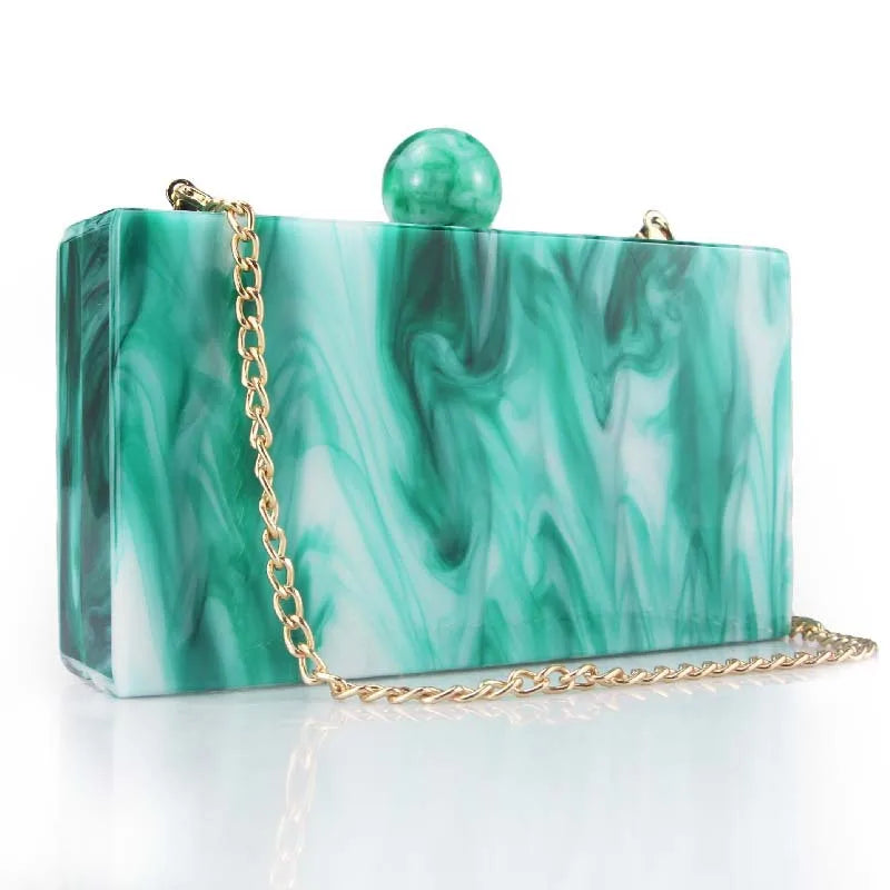 Pink Sky Blue Yellow Arylic Marble Square Evening Bags