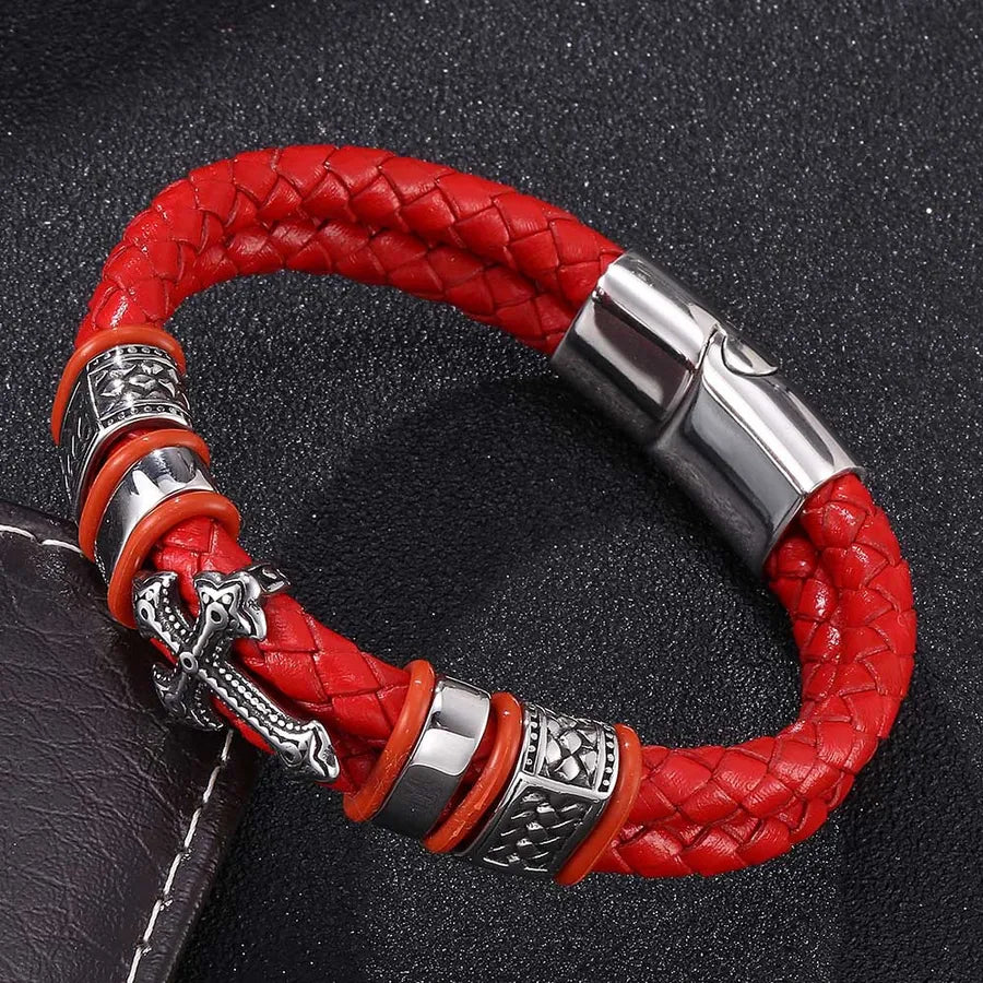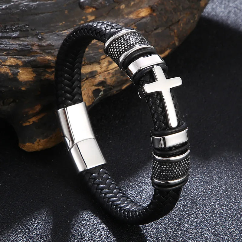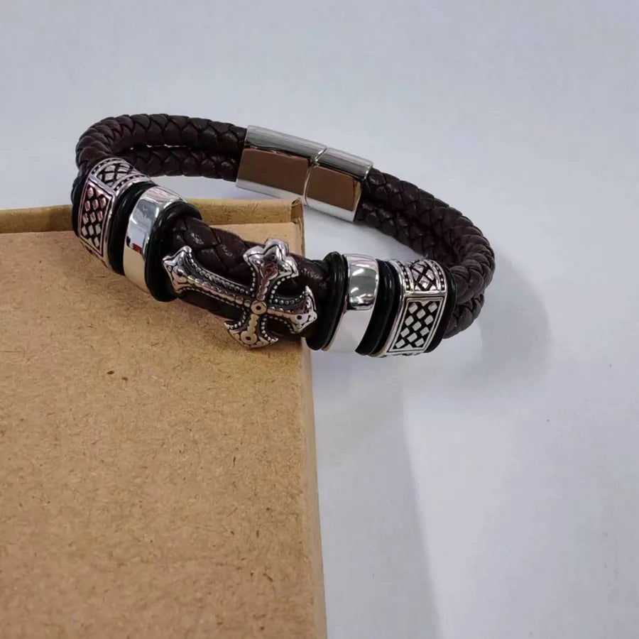 popular leather cross stainless steel bracelet metal accessories genuine leather bracelet men's bracelet jewelry