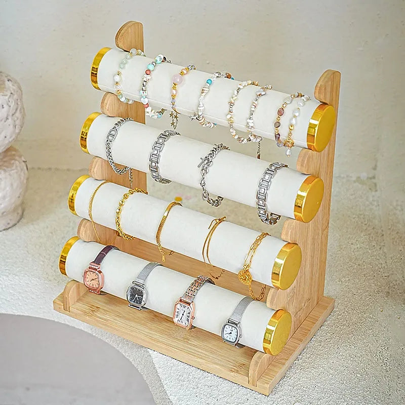 Premium Bamboo Wooden Jewelry Display Stand Bracelet Watch Headband Earring Storage Holder Live Broadcast Props Ornament Rack