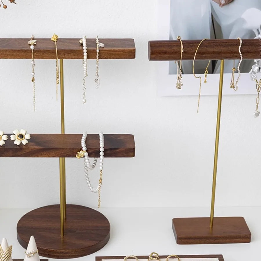 Premium Walnut Wood Board Jewelry Necklace Display Stand Shop Window Pendant Earring Stall Props Antique Style Fashion Accessory