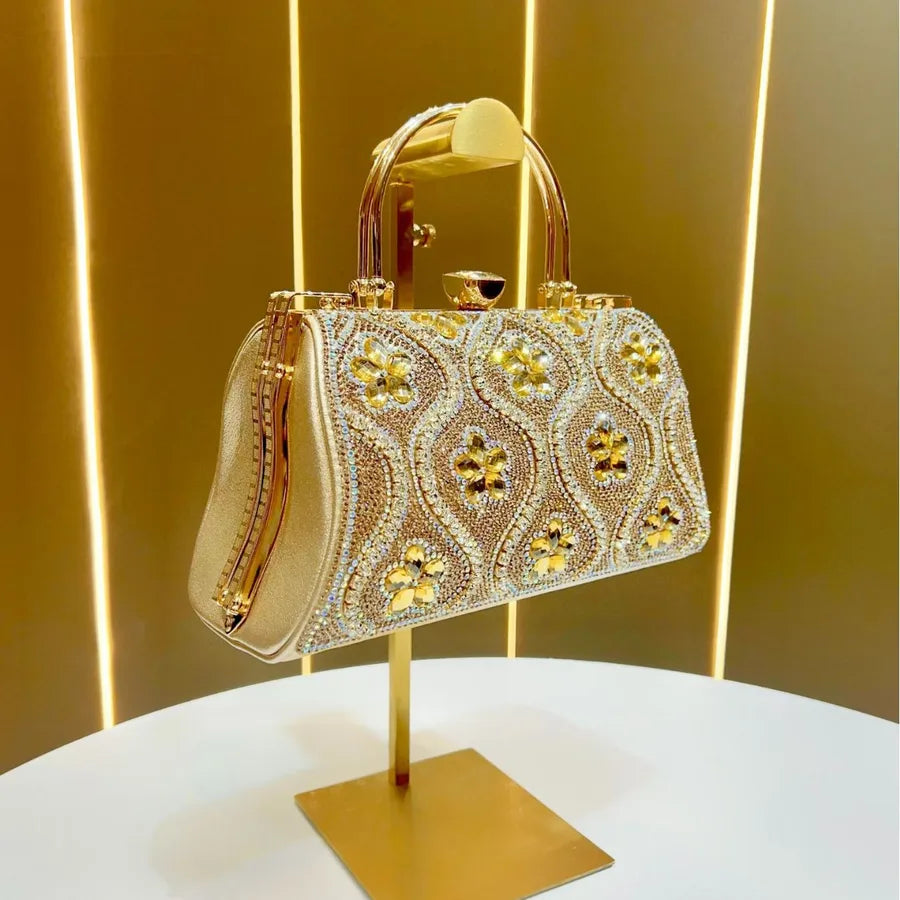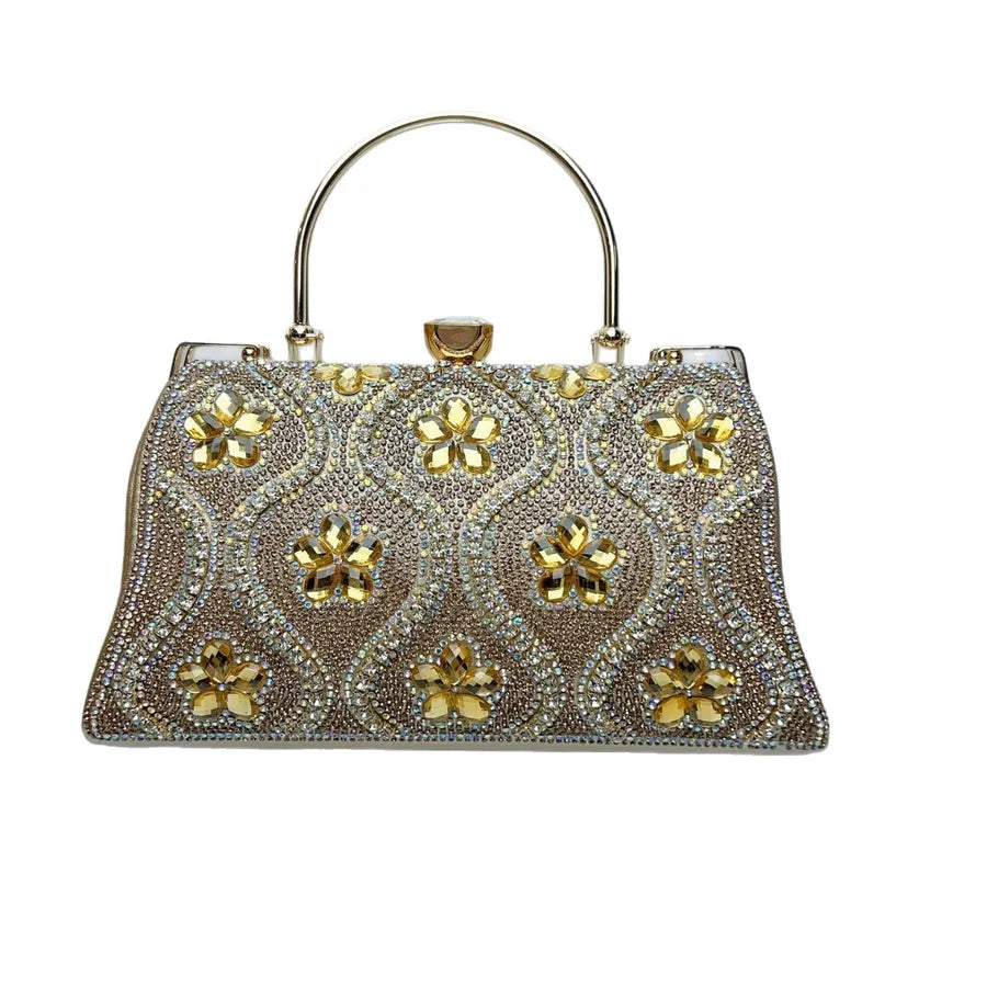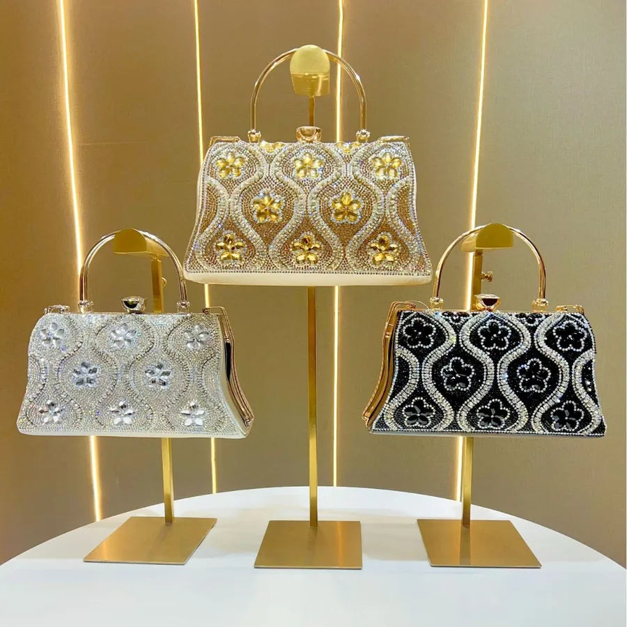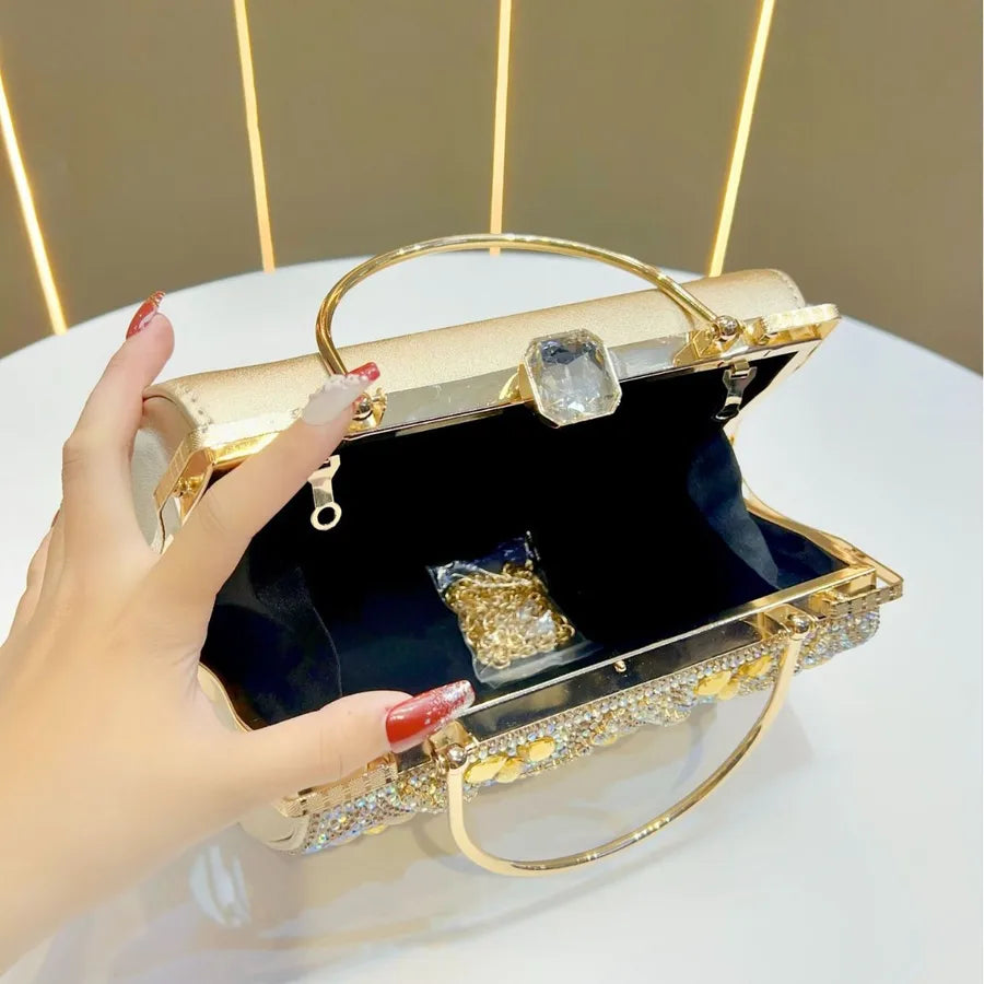Princess Style Large Capacity Women's Handbag Evening Bag Square Shape Polyester Material Chain Lock Diamond Fashion Elements