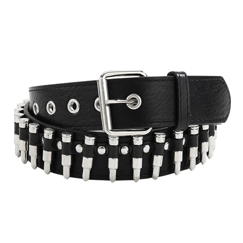 punk streetwear color block pu leather alloy patchwork women's leather belts