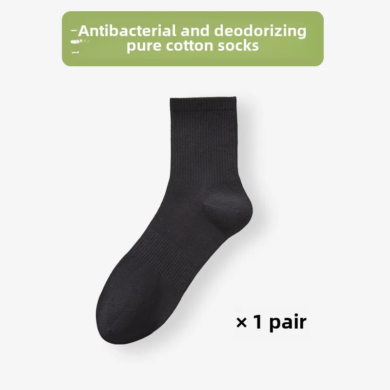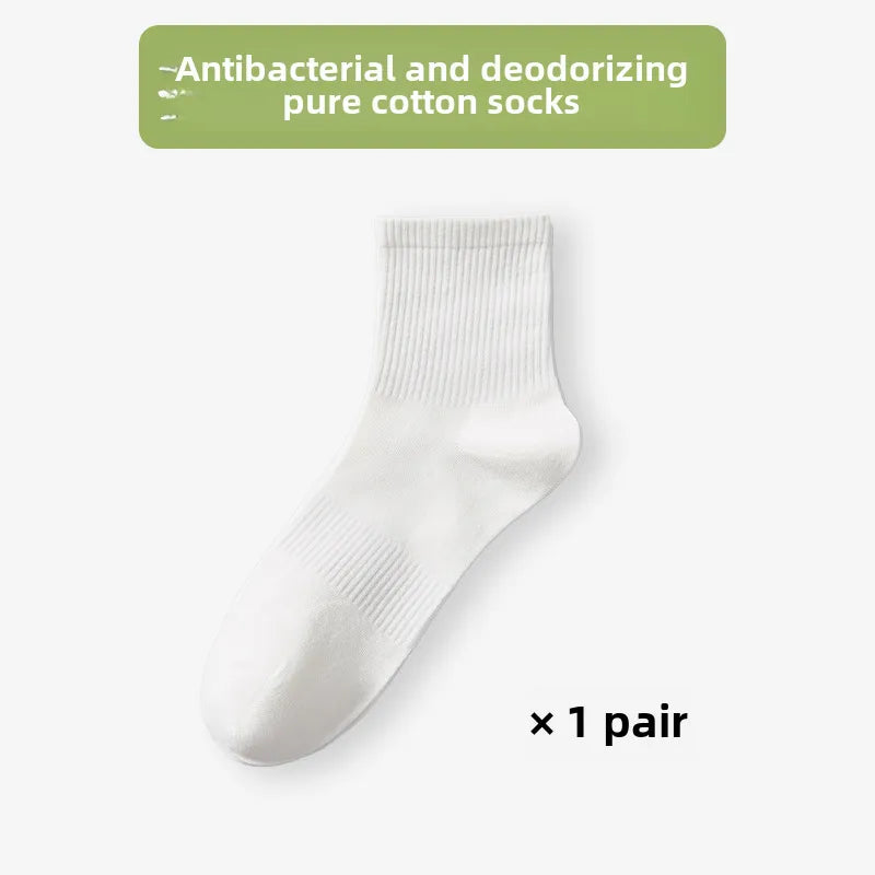Pure cotton men's socks summer sweat-absorbent deodorant tube socks 7A antibacterial breathable thin white socks men's summer
