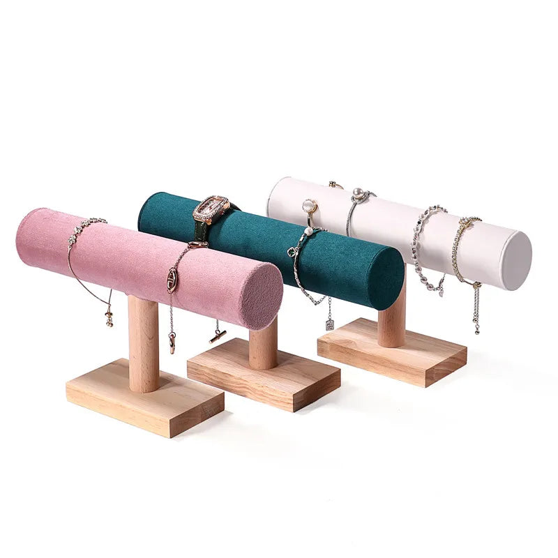 Real Wood Bracelet Display Stand Jewelry Storage Rack Hairband Holder Elastic Band Organizer Velvet Bracket Fashion Accessory