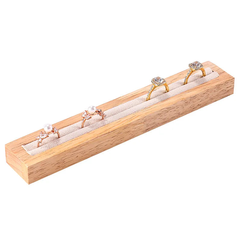 Rectangular Wooden Jewelry Ring Display Stand Holder Plate For Couple Rings High-End Craft Joining Style Jewelry Props