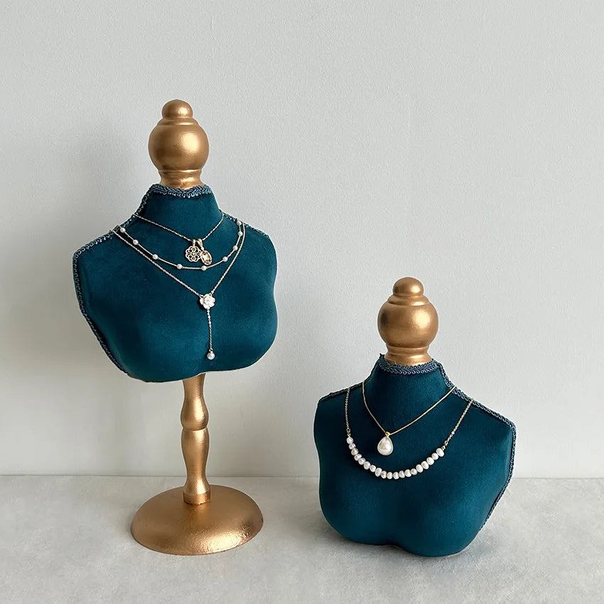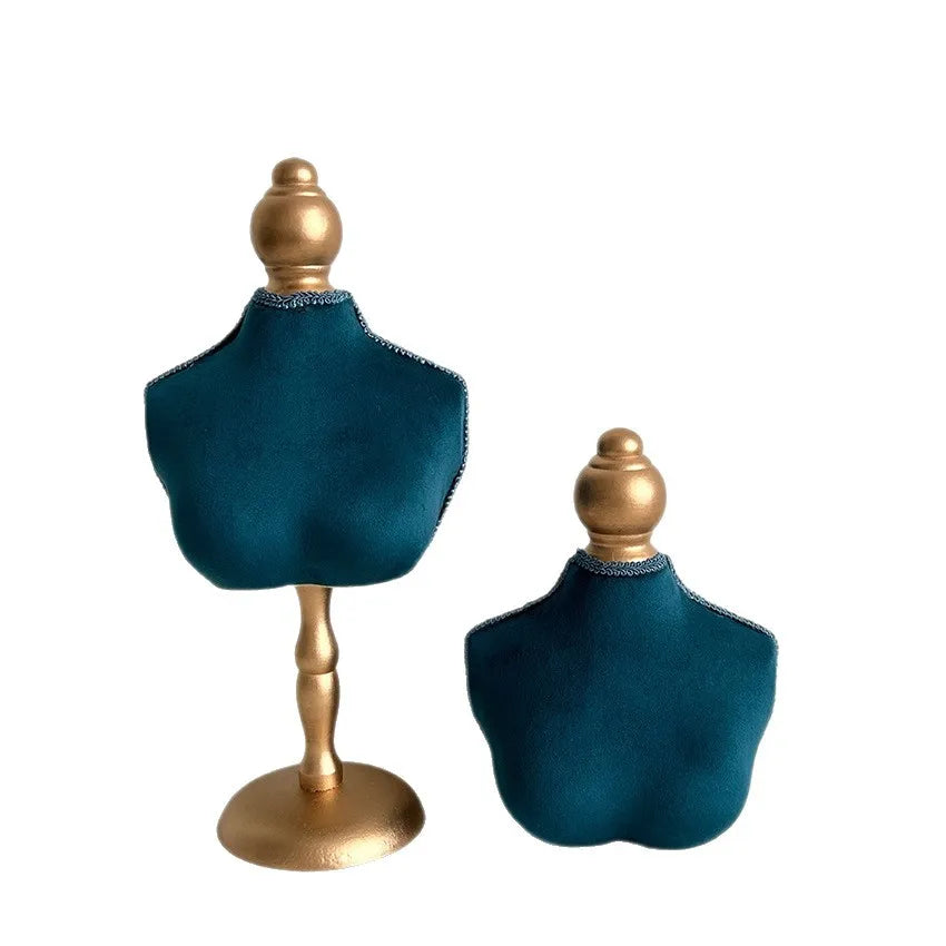 Retro Blue Velvet Jewelry Display Stand Necklace Bracelet Holder Premium Feel Wooden Chest Pattern Ideal For Shooting Props