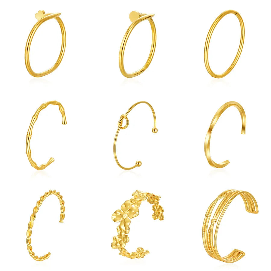 Retro Classic Style Geometric Flower 304 Stainless Steel Bangle In Bulk