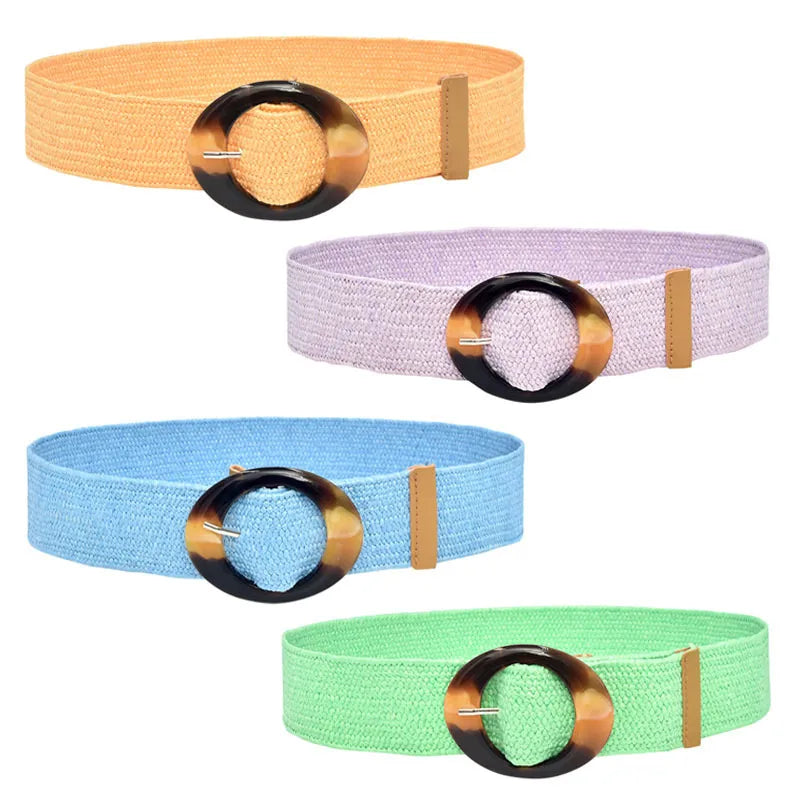Retro Commute Stripe Solid Color Straw Women's Woven Belts