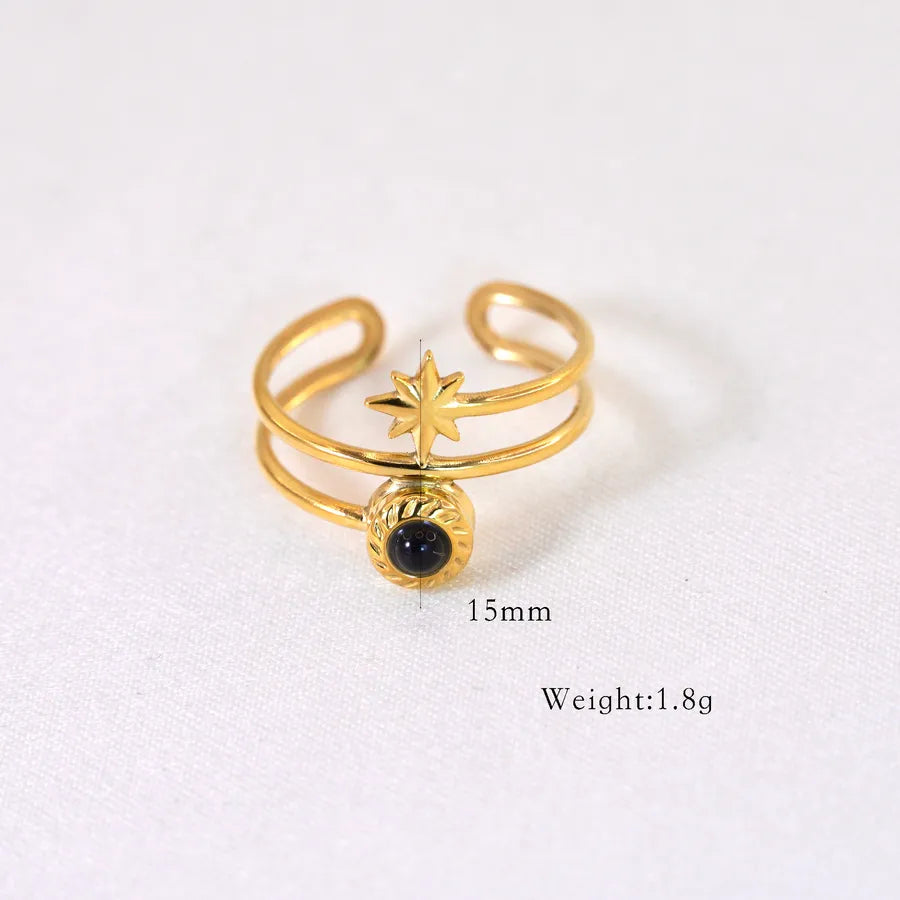 Retro French Style Eight awn star Geometric Titanium Steel Natural Stone Open Rings In Bulk