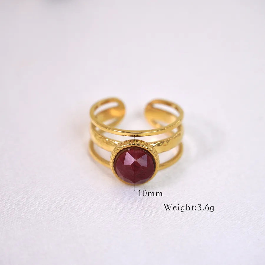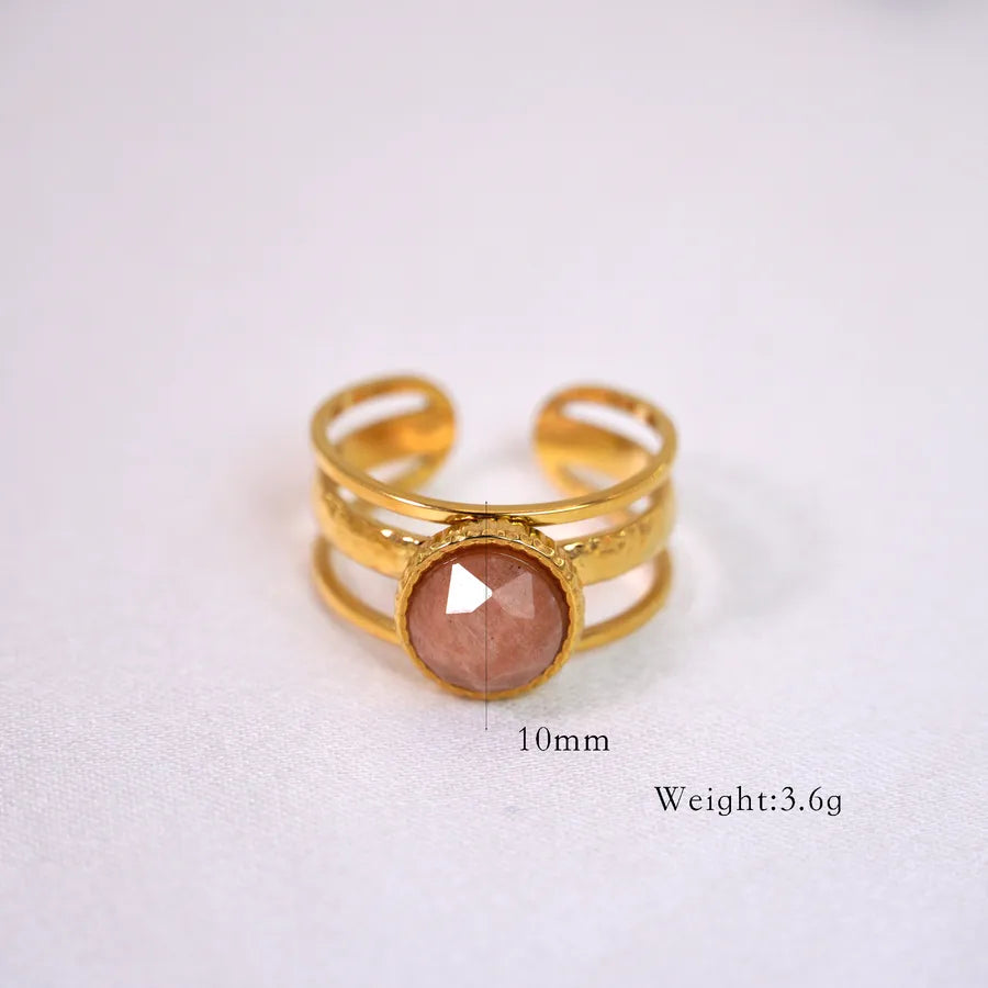 Retro French Style Geometric Titanium Steel 14K Gold Plated Natural Stone Open Rings In Bulk