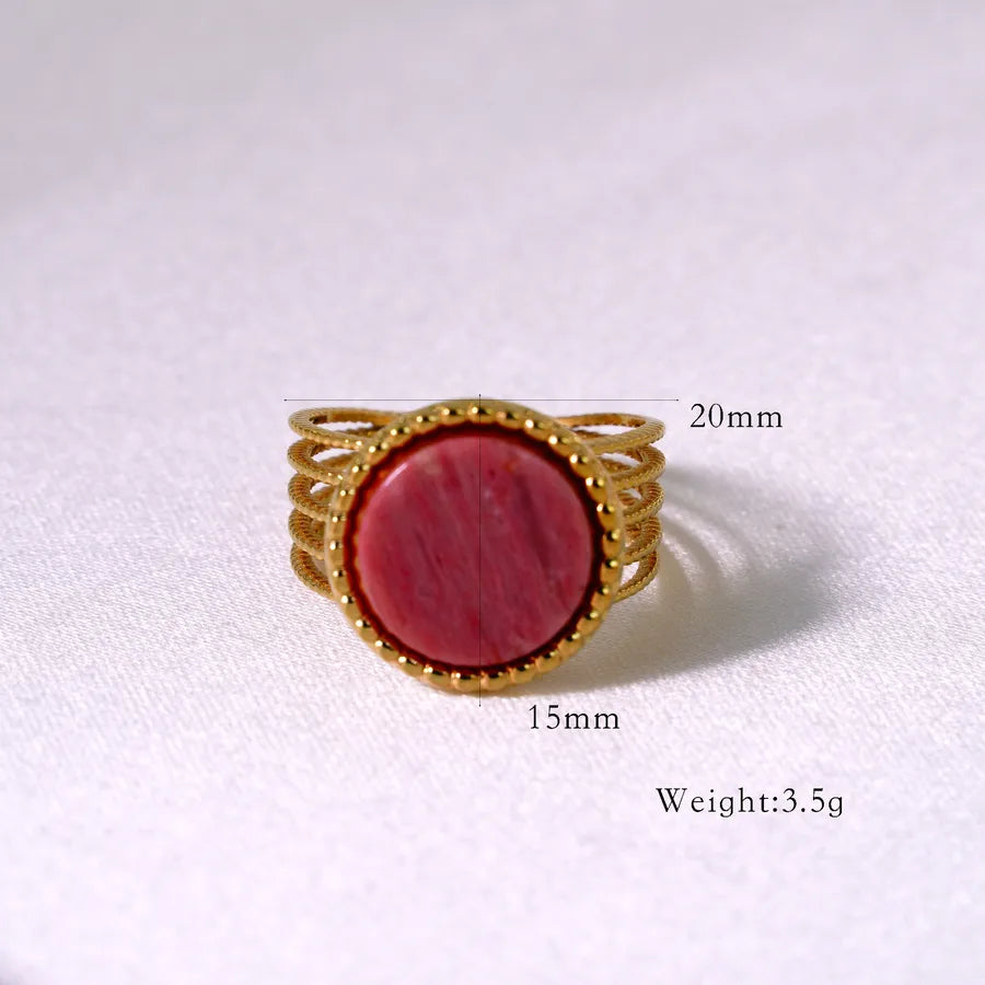 Retro French Style Geometric Titanium Steel Natural Stone Open Rings In Bulk