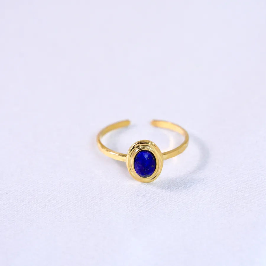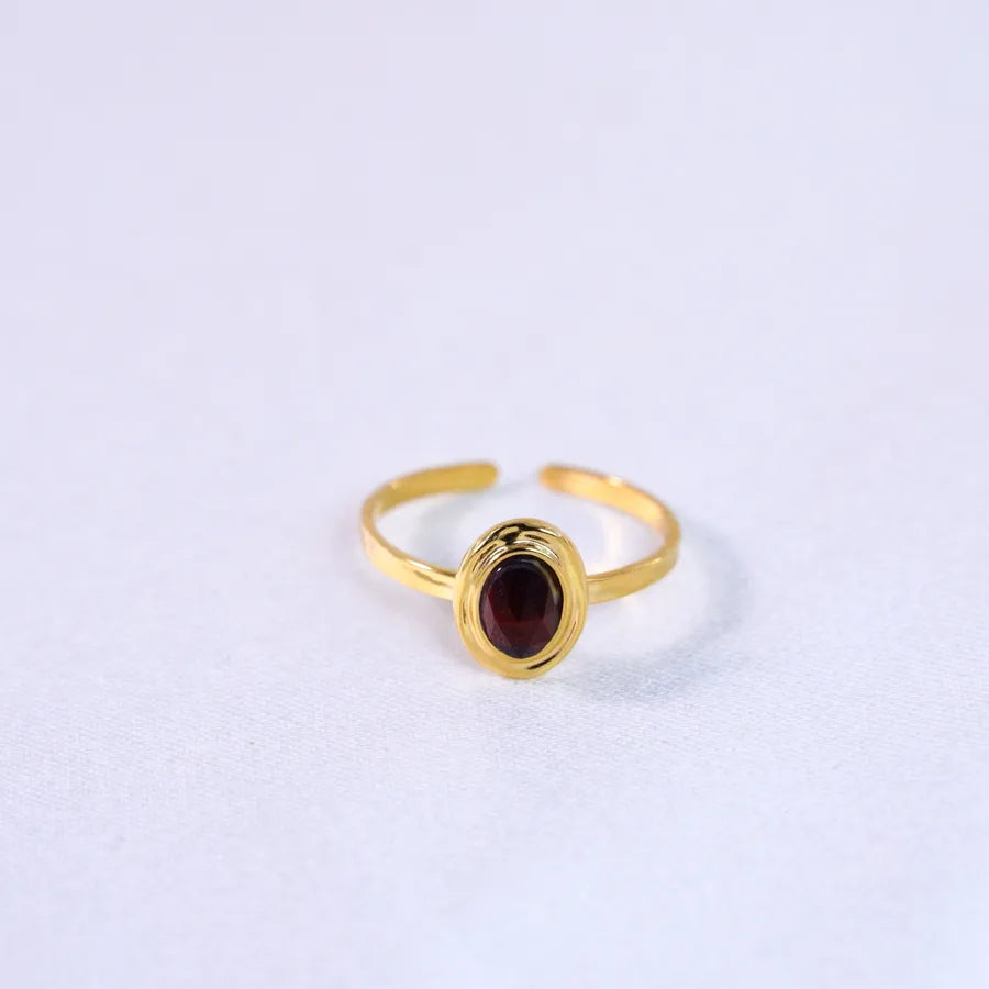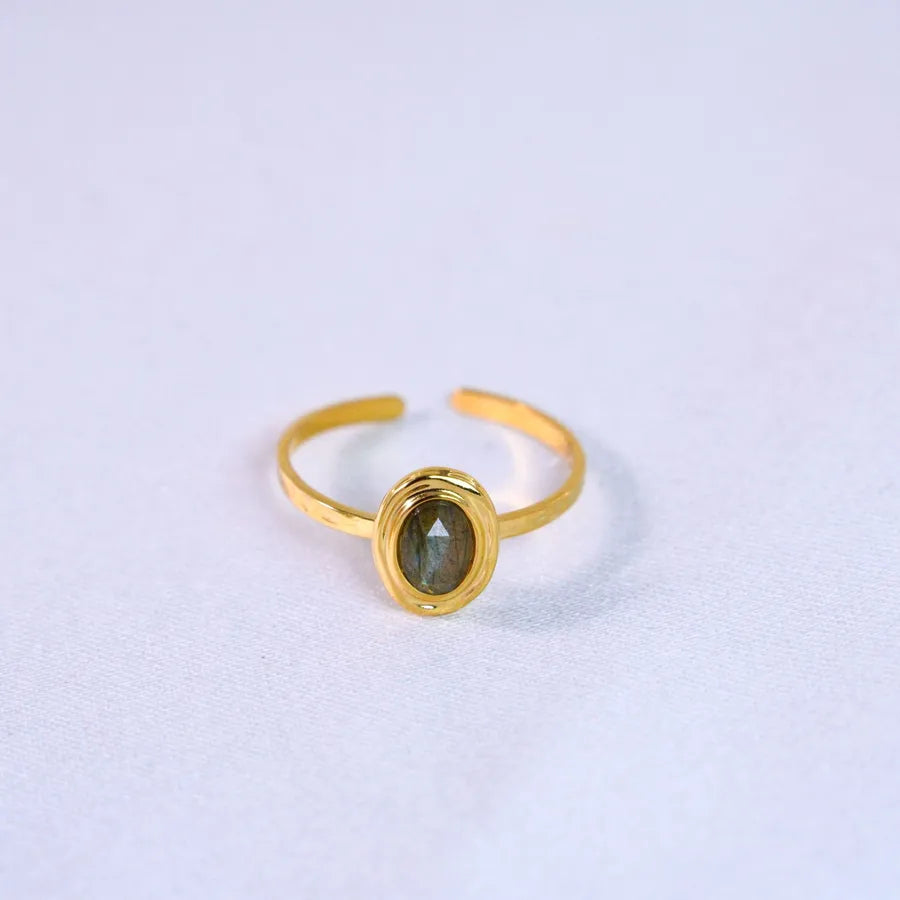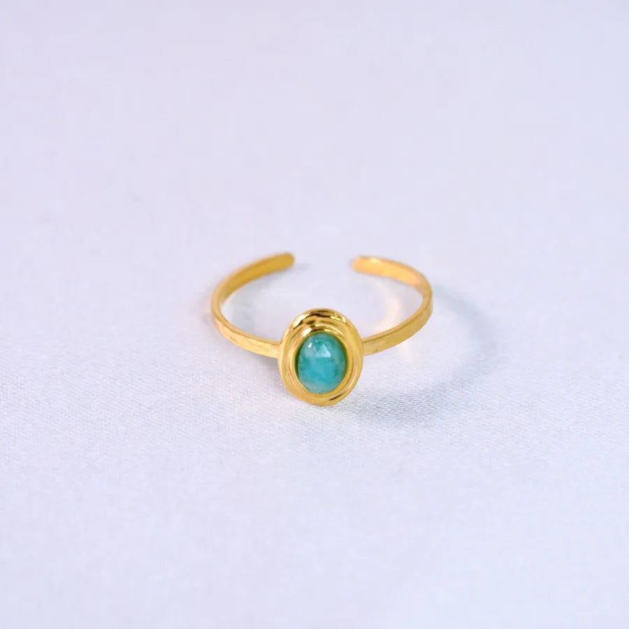 Retro French Style Geometric Titanium Steel Natural Stone Open Rings In Bulk
