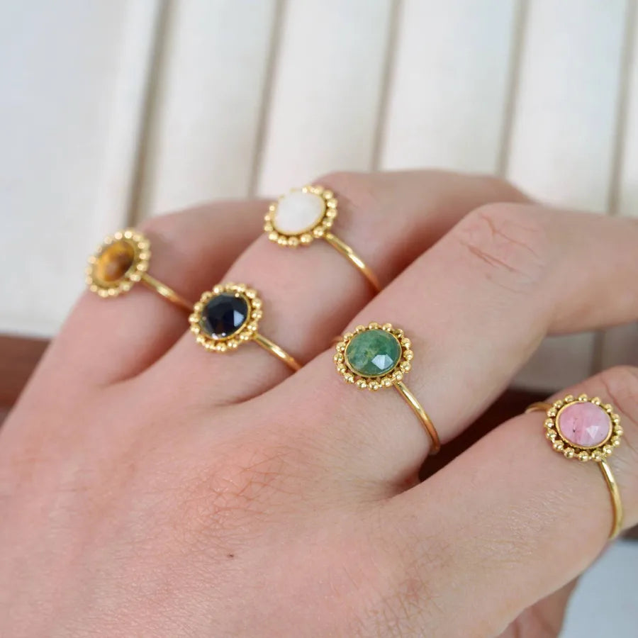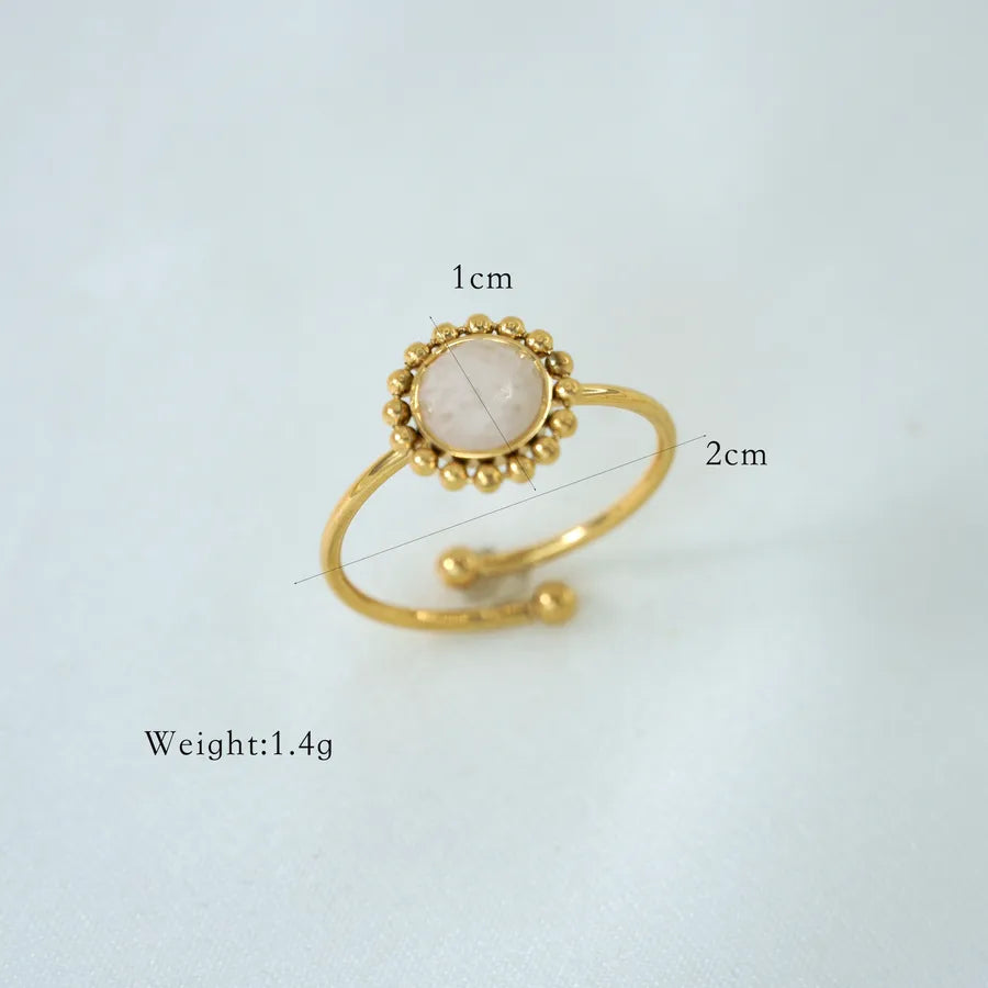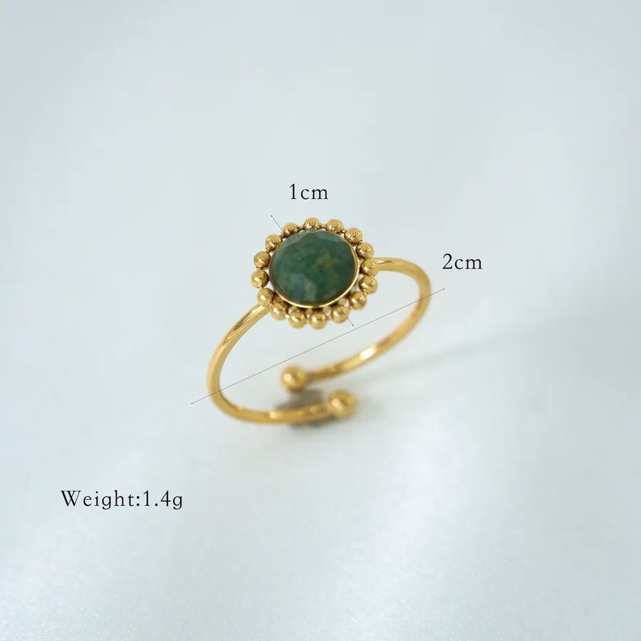 Retro Geometric Titanium Steel Natural Stone Open Rings In Bulk