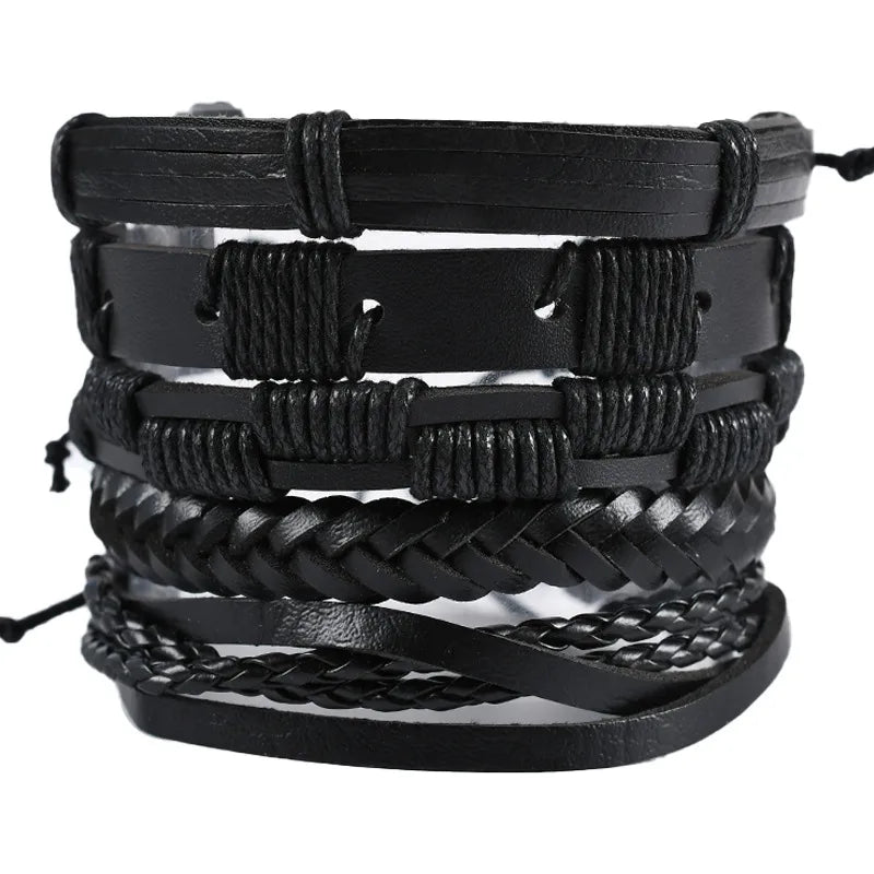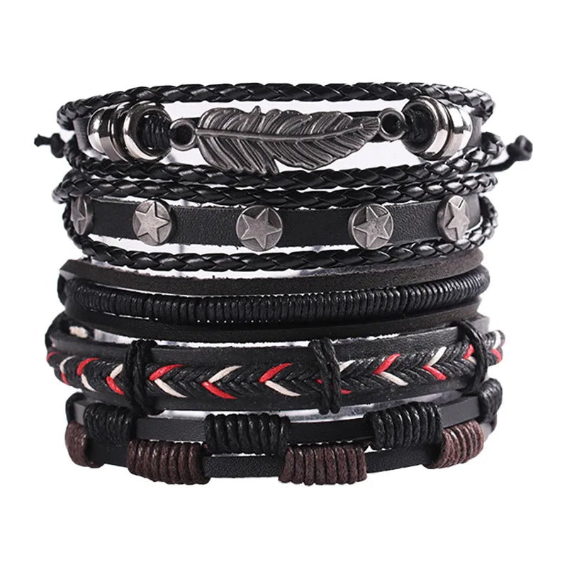 Retro Men's Bracelet 5 Pack Cross Woven Leather Adjustable Set Bracelet Bracelet Wholesale