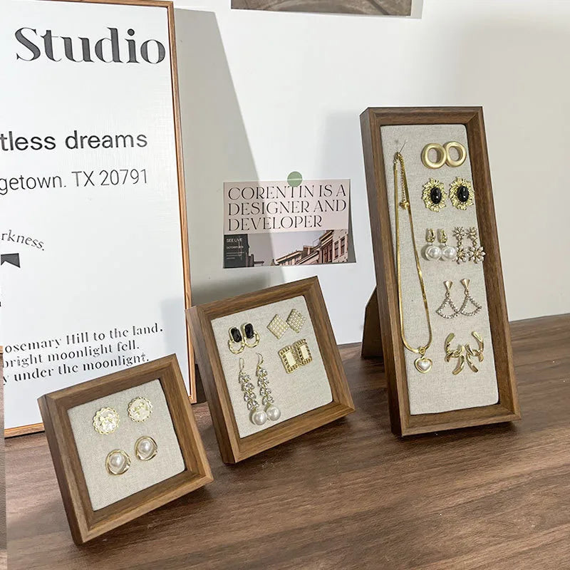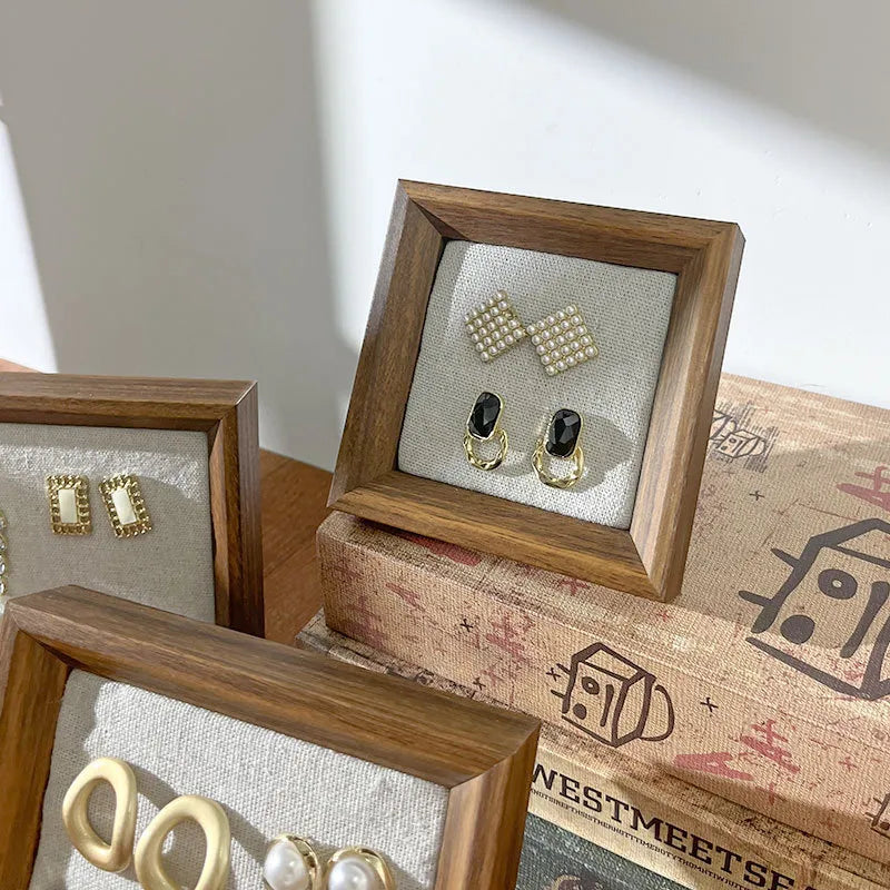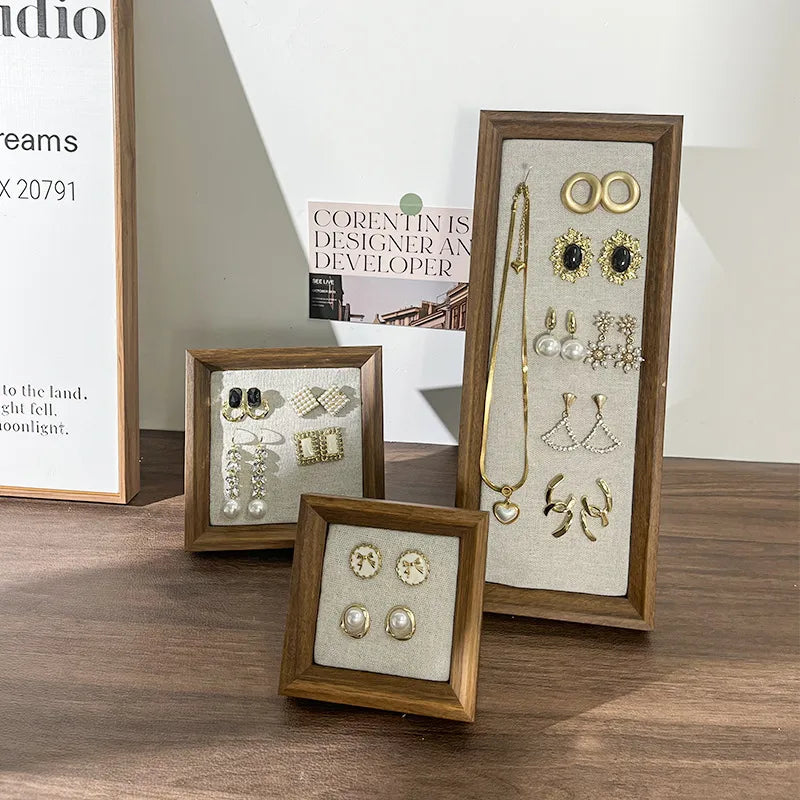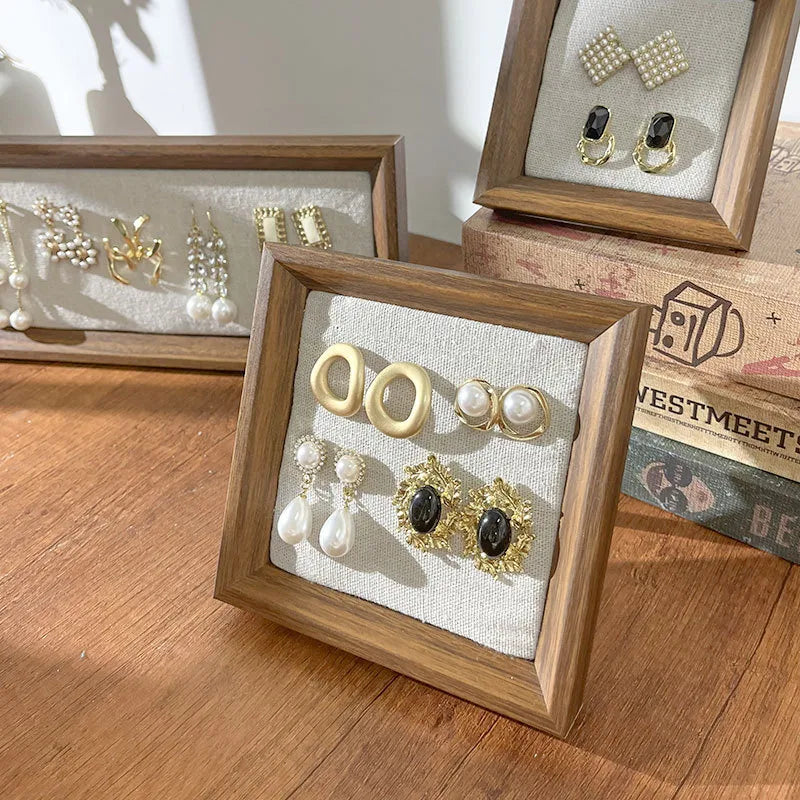 Retro Picture Frame Jewelry Stand Creative Ear Cuff Display Board Earring Necklace Storage Rack Nordic Style Wood Material