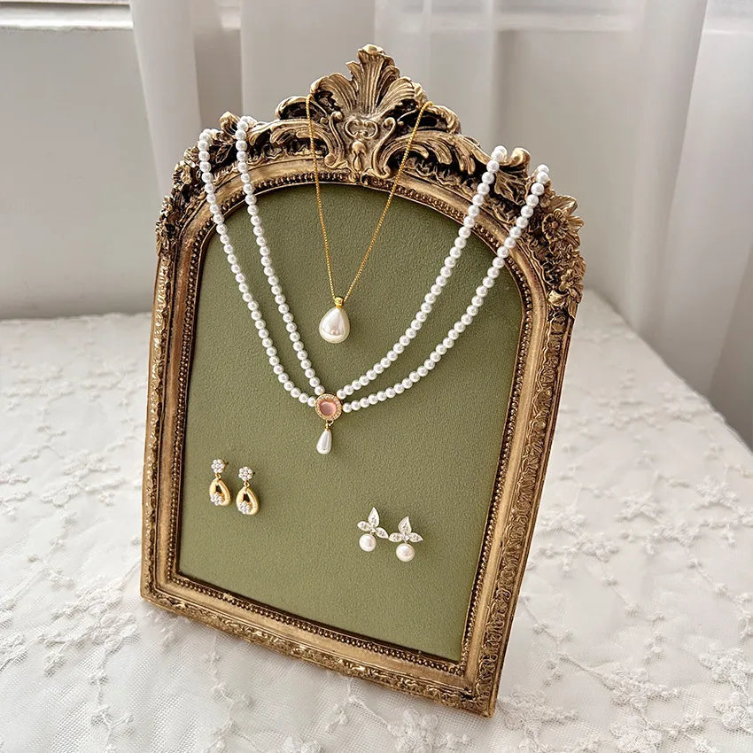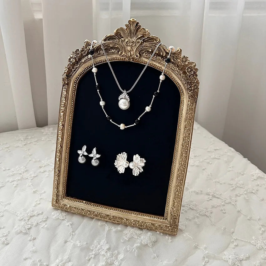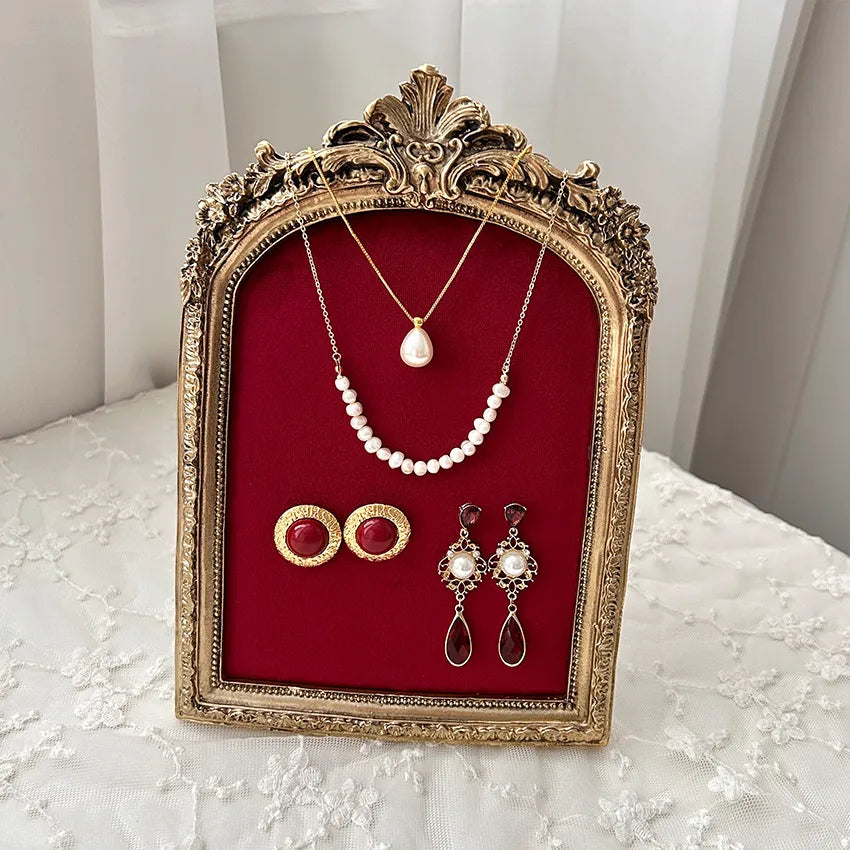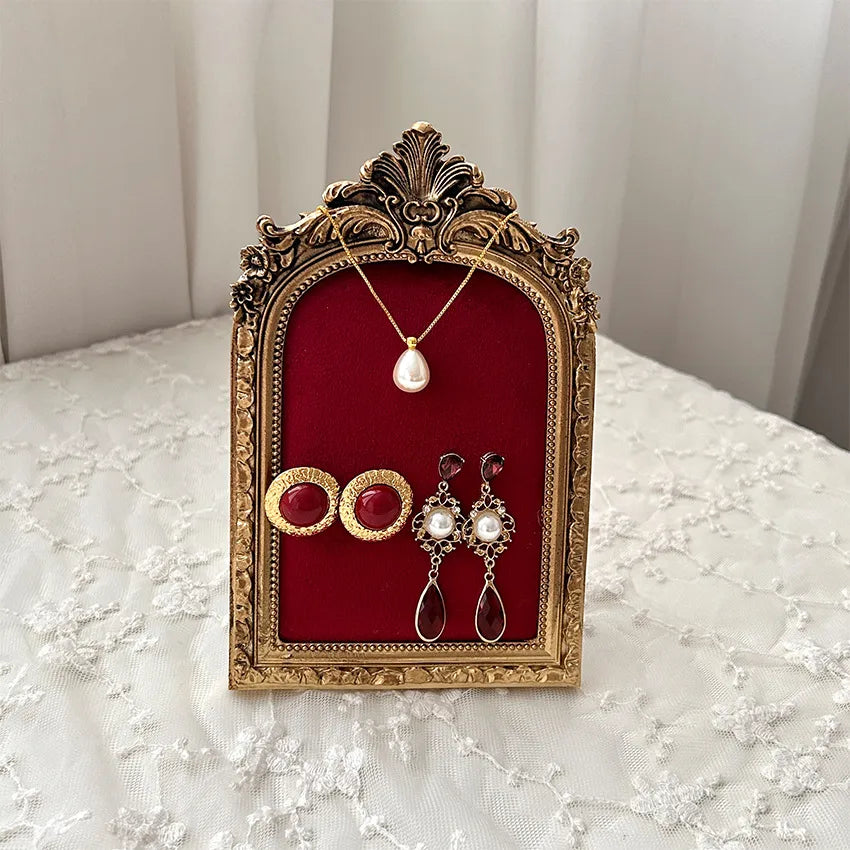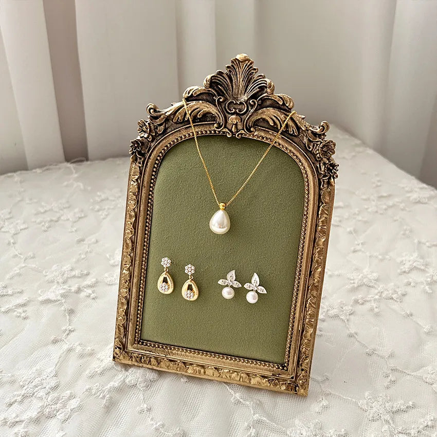 Retro Picture Frame Velvet Jewelry Display Stand Earring Holder Necklace Stand Fashionable Resin Jewelry Showcase Props