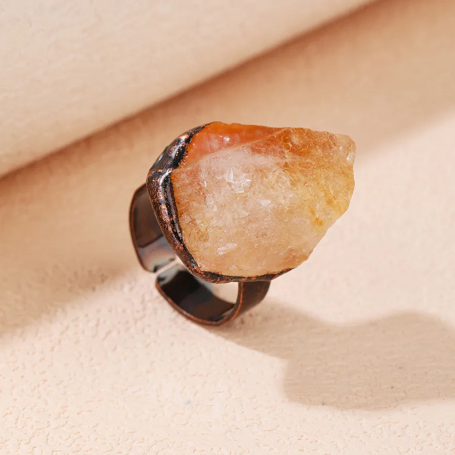 Retro Punk Irregular Copper Citrine Open Rings In Bulk