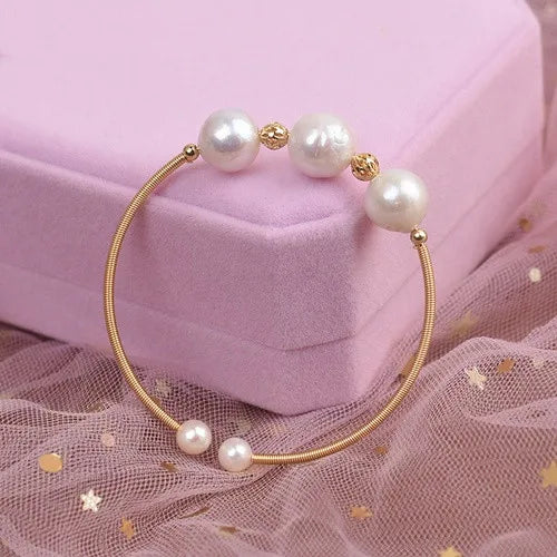 retro round copper inlay pearl bangle 1 piece