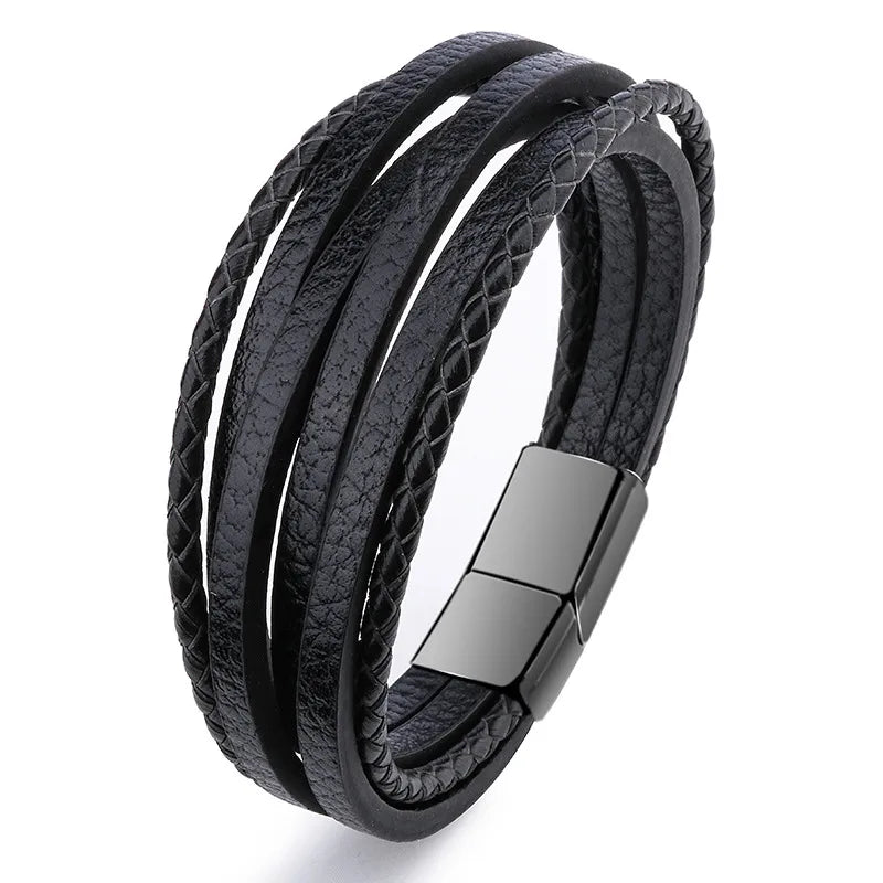 Retro Simple Style Solid Color Pu Leather Alloy Magnetic Buckle Layered Plating Men's Bracelets Men Cord & Leather Bracelets