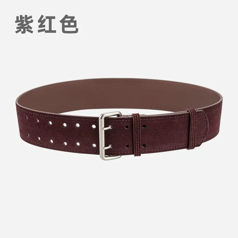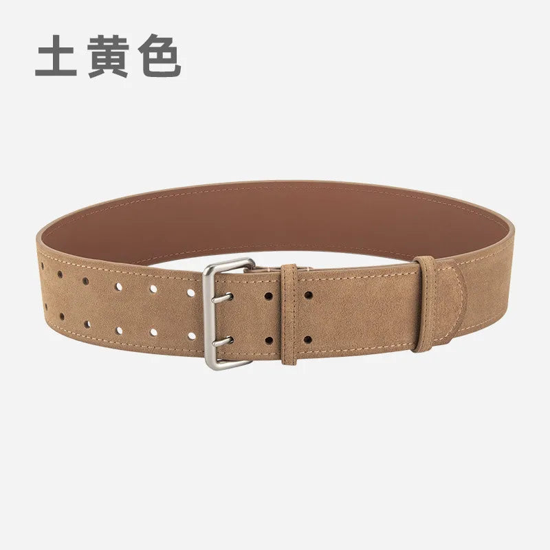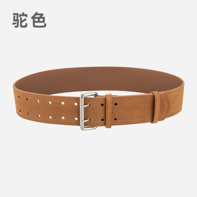 Retro Simple Style Solid Color Two-Layer Cowhide Alloy Plating Women's Leather Belts