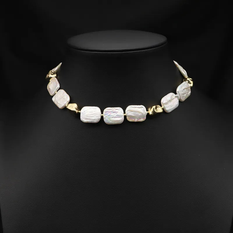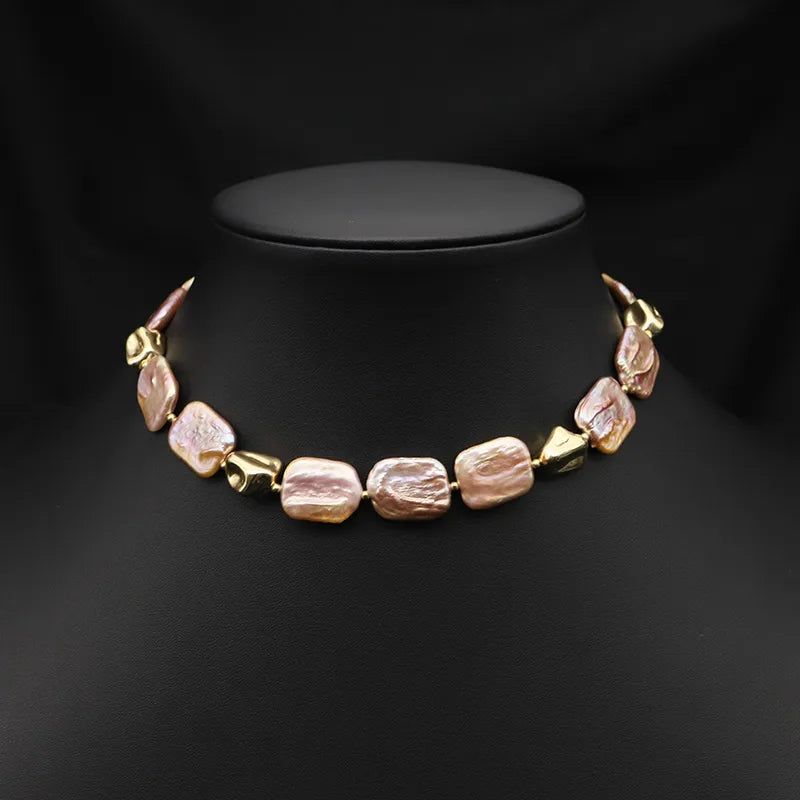 retro solid color freshwater pearl plating 18k gold plated necklace