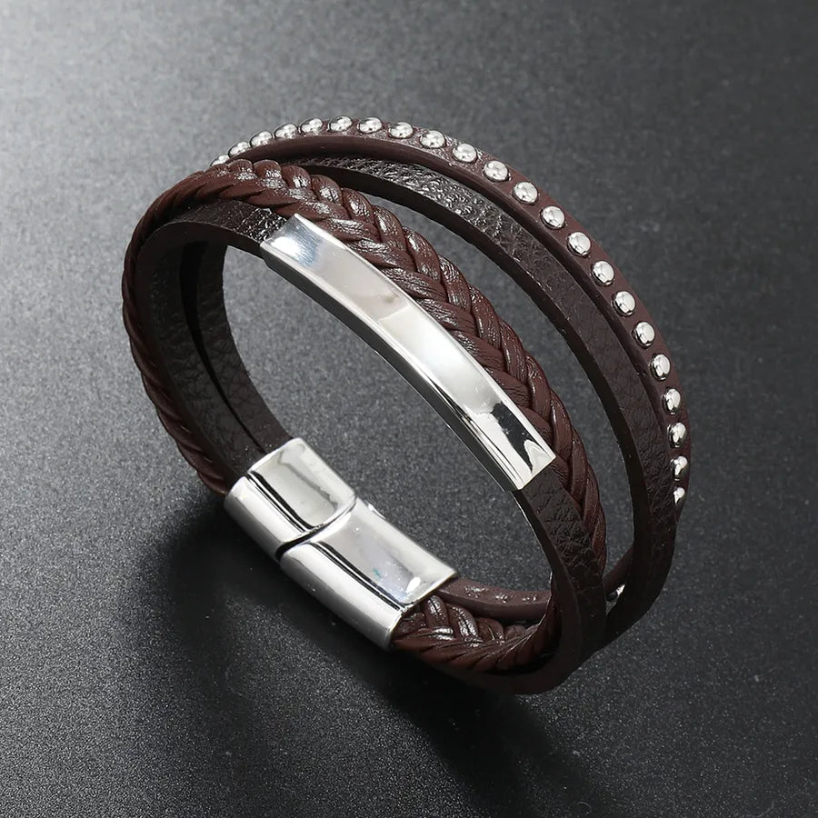 Retro Solid Color Stainless Steel Pu Leather Unisex Bracelets