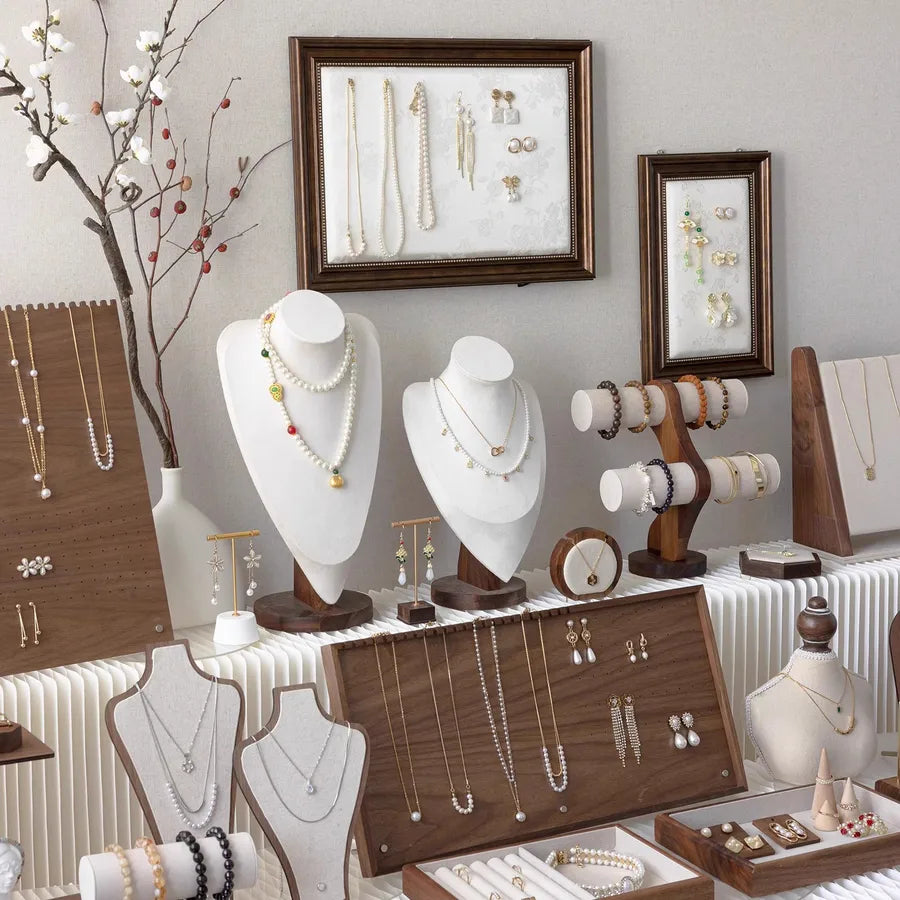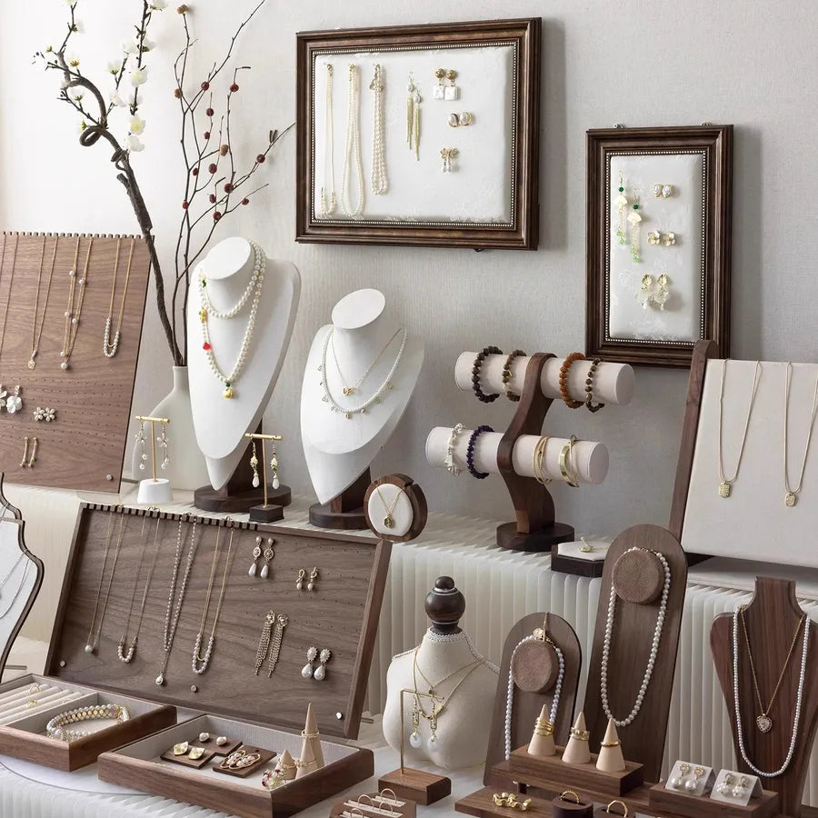 Retro Walnut Color Jewelry Display Stand Ring Earring Necklace Stall Jewelry Accessories Display Plate Shop Counter Top