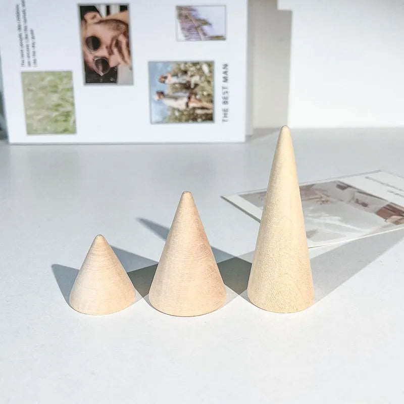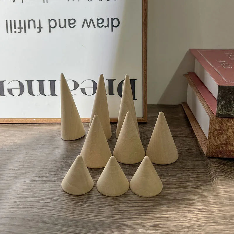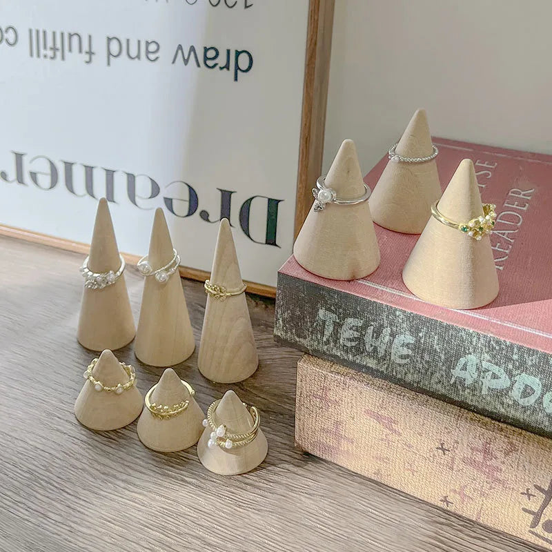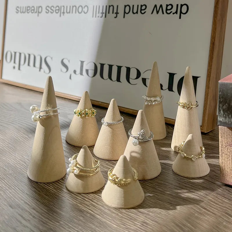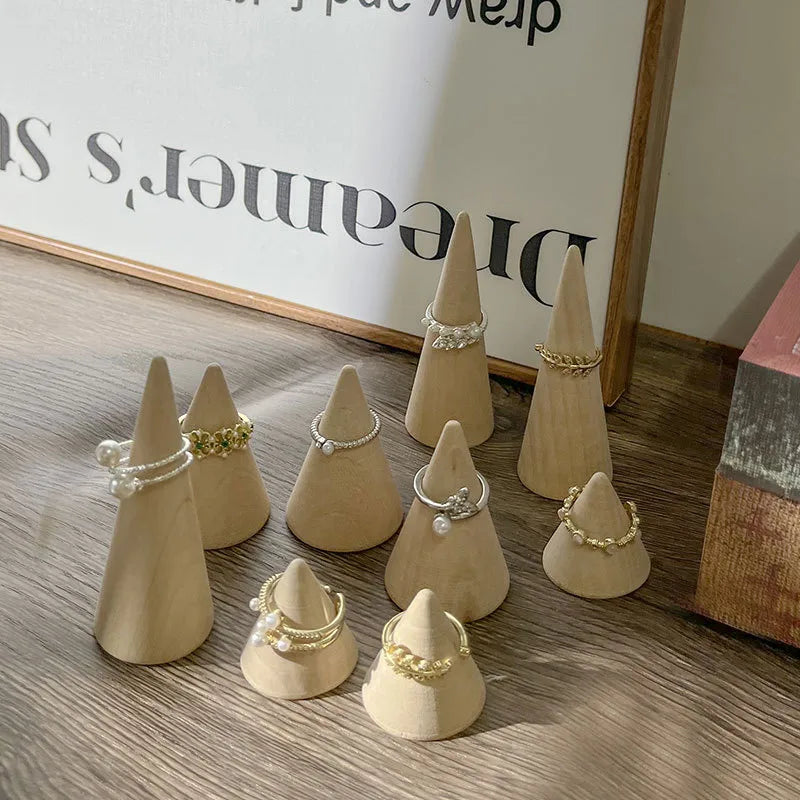 Retro Wooden Ring Display Stand Cone Shape Jewelry Creative Showcase Simple Style Nordic Craft Accessory Photo Prop