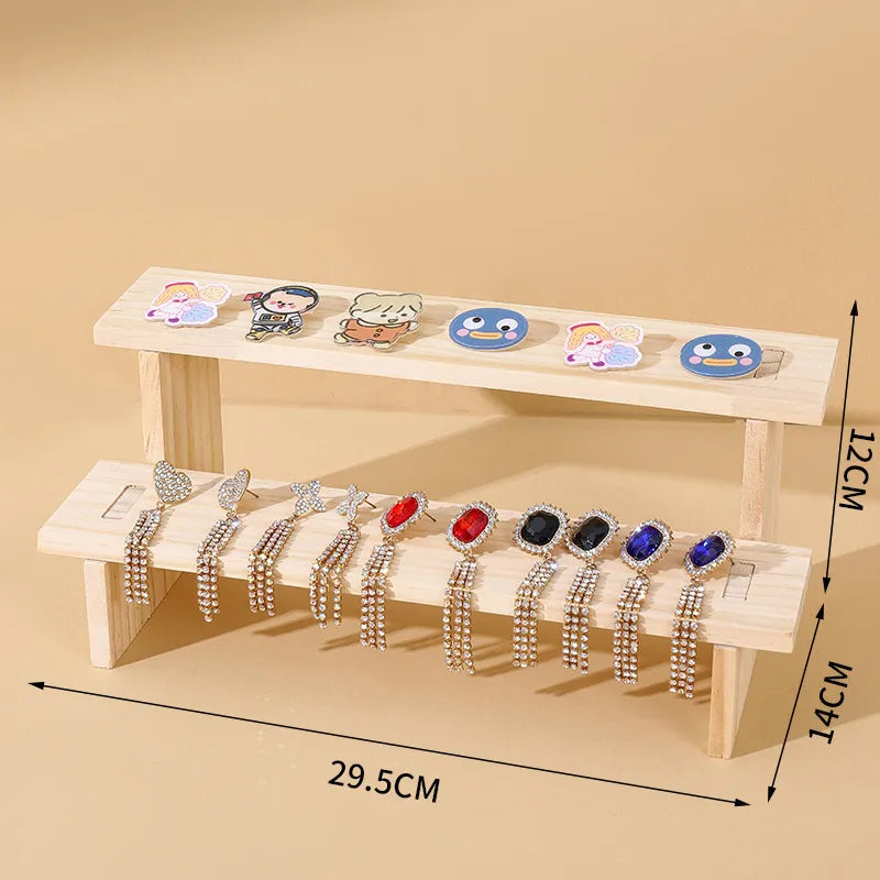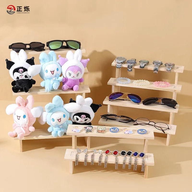 Rustic Wooden Staircase Display Stand For Accessories Toy Figure Eyewear Vintage Design Jewelry Live Broadcast Props Stand