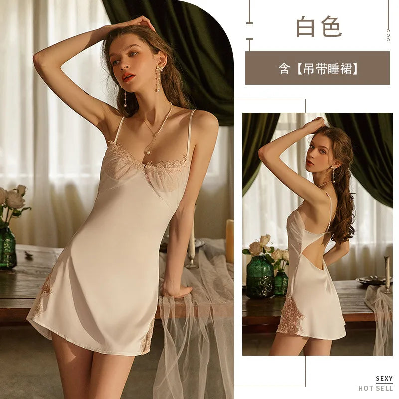 Sexy Lace Backless Thin Home Sleepwear Set Alluring Split Design Comfortable Nightgown French Style Intimate Apparel For Women