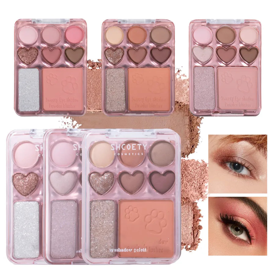 SHCOETY8 Color Love Eye Shadow Plate Blush Highlight Integrated Natural Three-dimensional Waterproof Long-lasting Fine Flash Eye Shadow