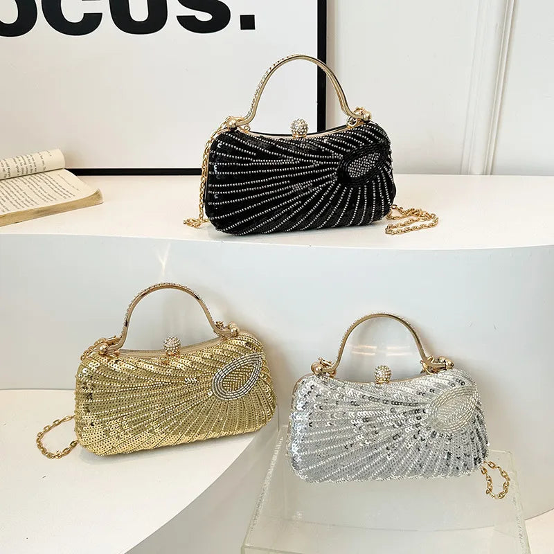 Silver Gold Black PVC Solid Color Sequins Square Evening Bags