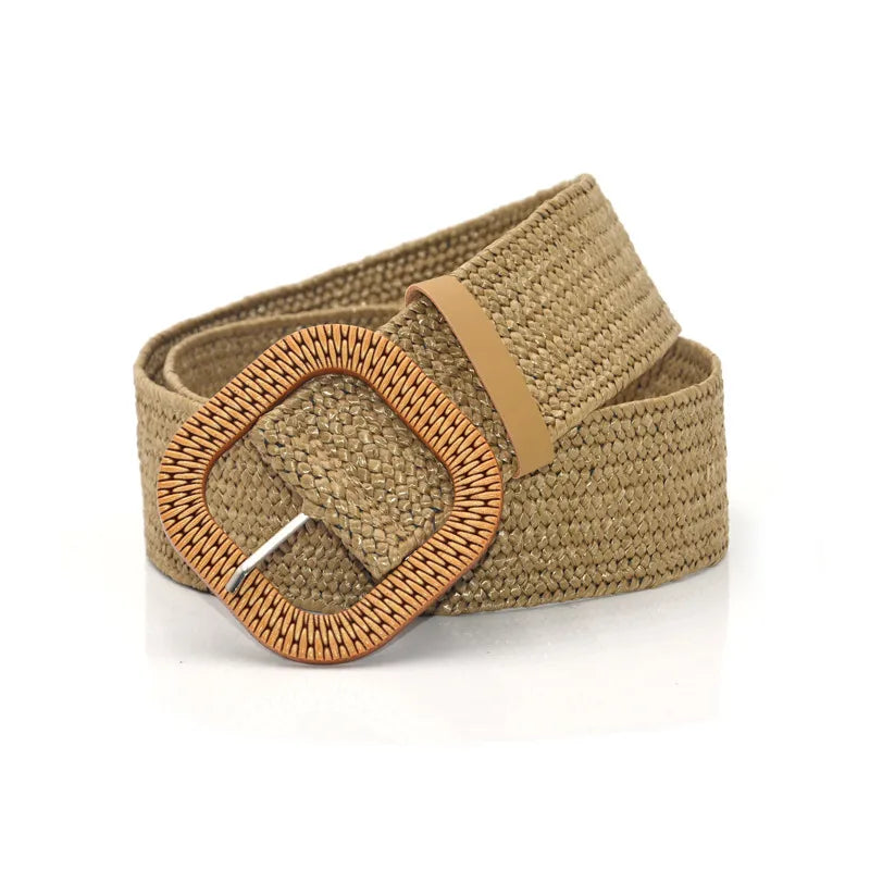 Simple fashion straw elastic waist girdle women's accessories dress body shaping belt wooden buckle waist girdle