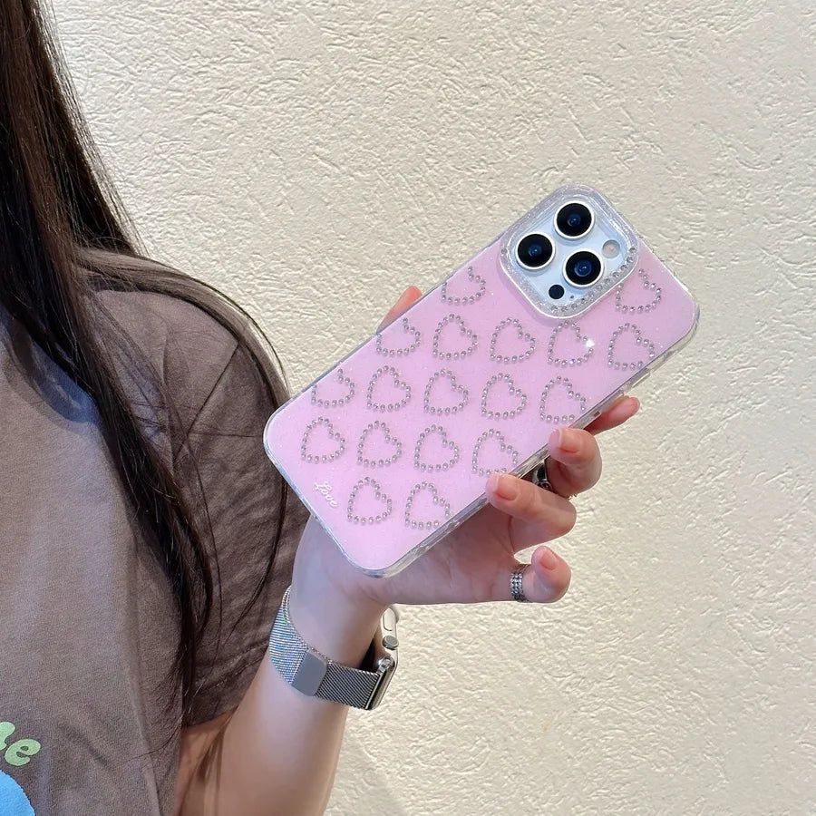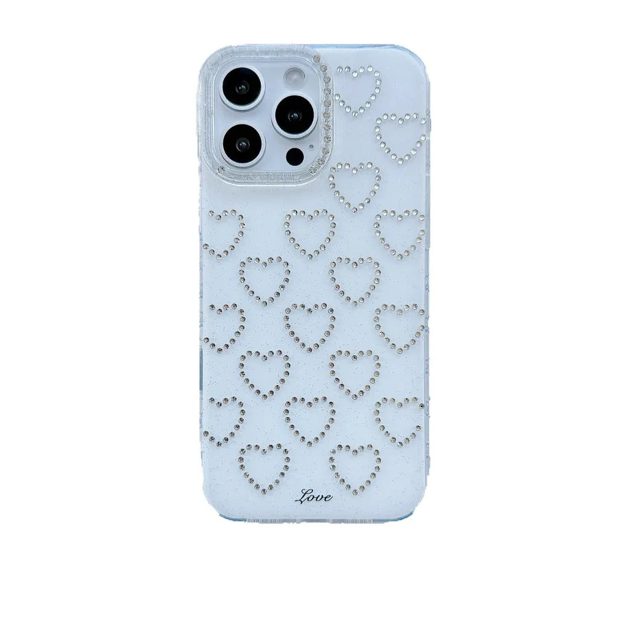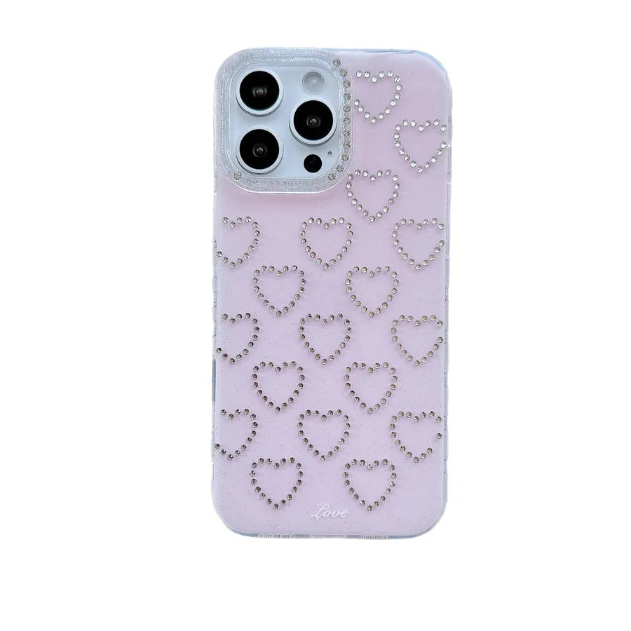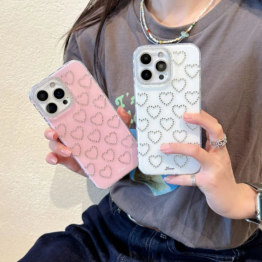 Simple Pure Color Flash Diamond Heart iPhone Case Suitable For 15Promax 14Pro 13 Girl's Elegant TPU Mobile Phone Cover