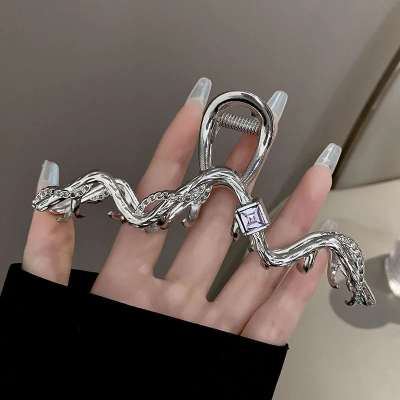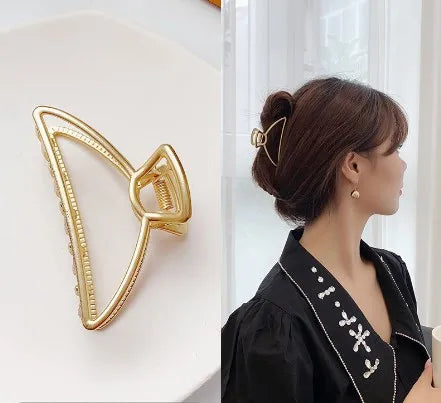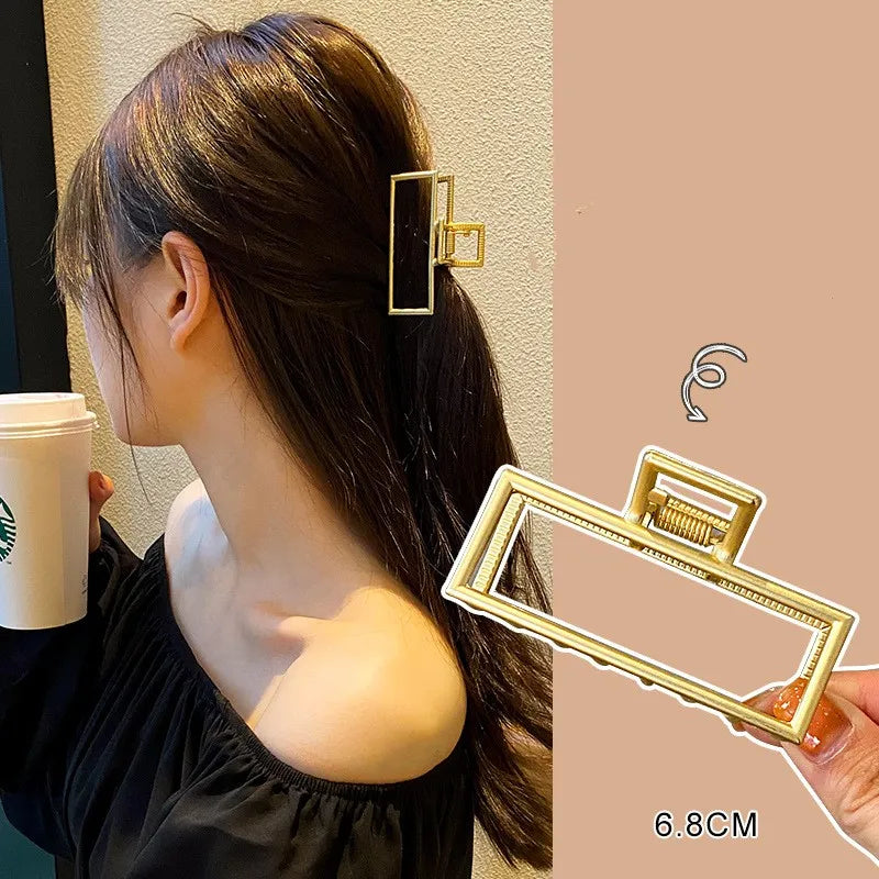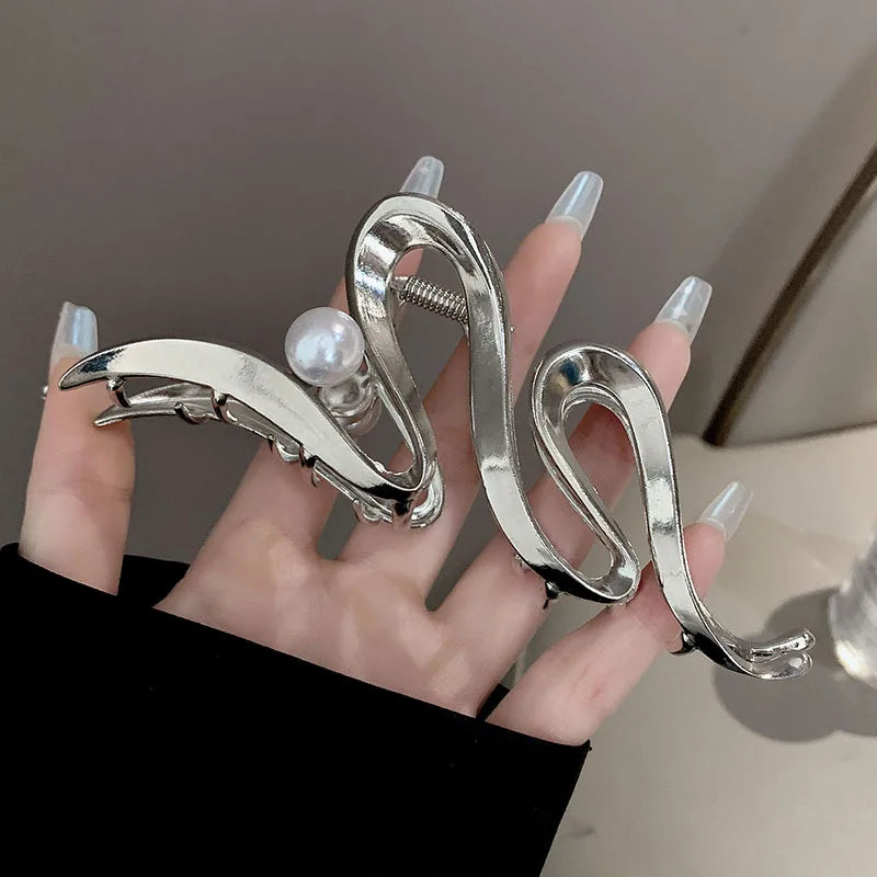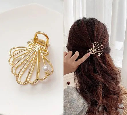 simple style sector shell rectangle imitation pearl rhinestone metal hair claws