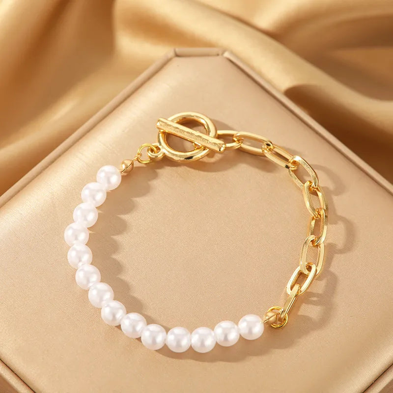 Simple Style Solid Color Artificial Pearl Iron Plating Women's Bracelets