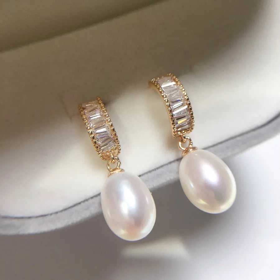 Source origin Zhuji natural freshwater pearl earrings women's 18K gold light luxury high-grade zircon earrings wholesale