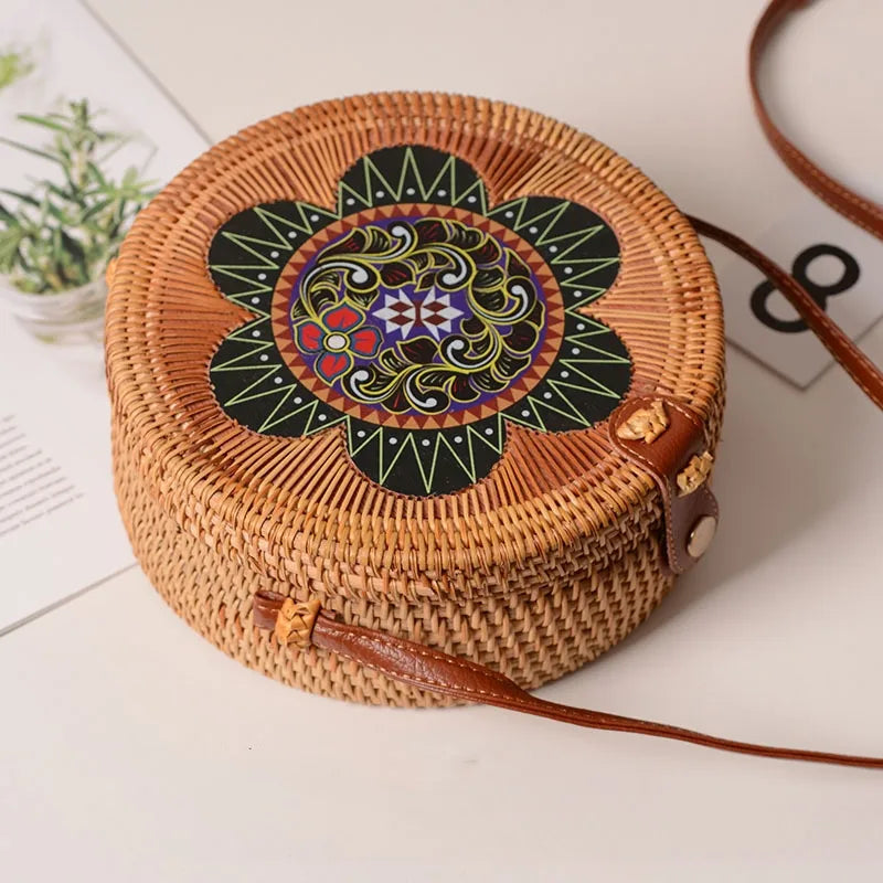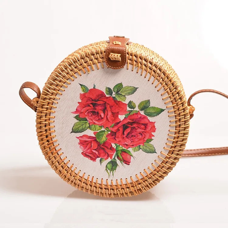 Special Sale Rattan Ins Butterfly Bag Mori Style Vintage Artistic Handmade Flower Petal Bag Woven Bag PU Belt