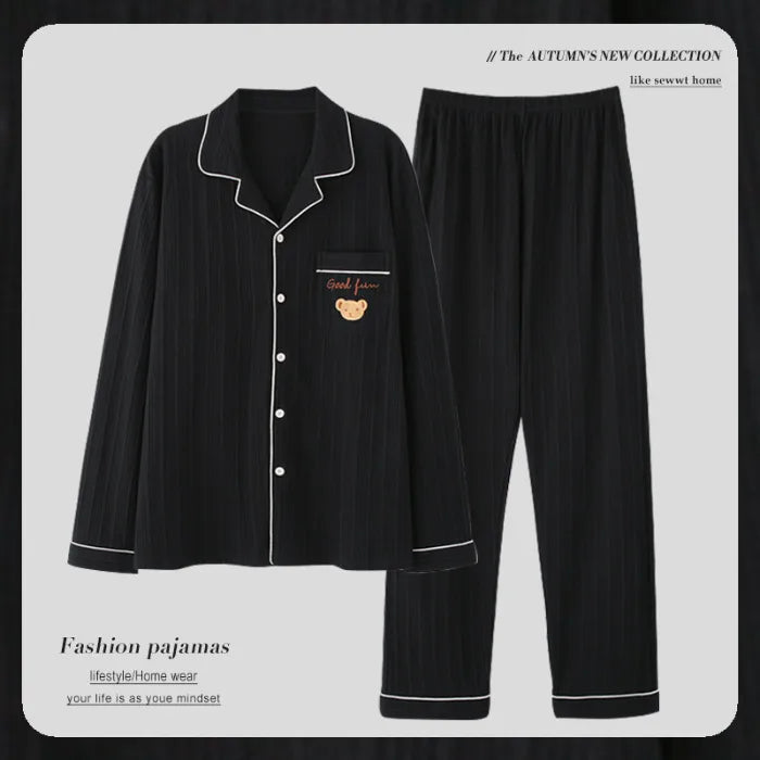 Spring Autumn Women's Long Sleeve Thin Casual Comfortable Home Clothes Set Polyester Milk Silk Medium Weight Sleepwear