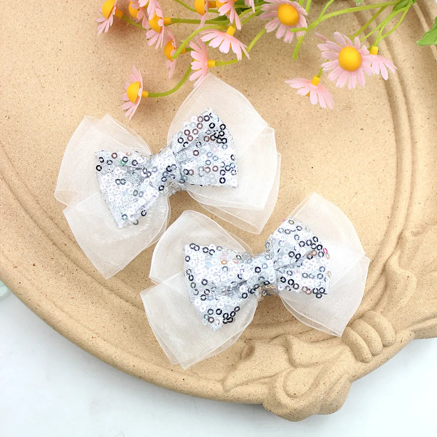 Summer New Snow Gauze Sequin Bow Hairpin Girls Princess Shiny Hairpin Candy Color Children's Hair Accessories