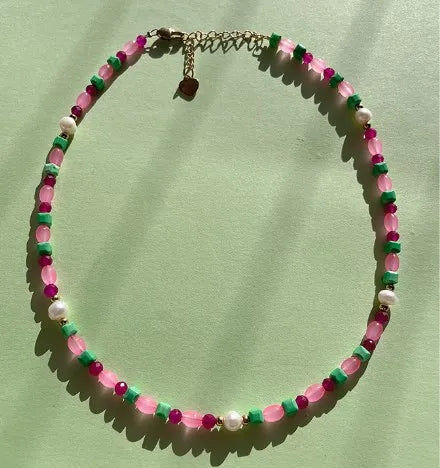 Sweet Color Block natural stone Freshwater Pearl Titanium Steel Necklace In Bulk