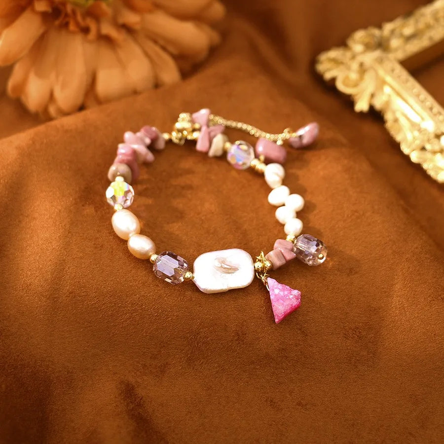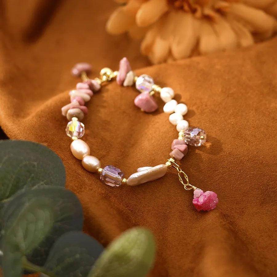 Sweet Commute Rhombus natural stone gravel 18K Gold Plated ball chain Bracelets In Bulk
