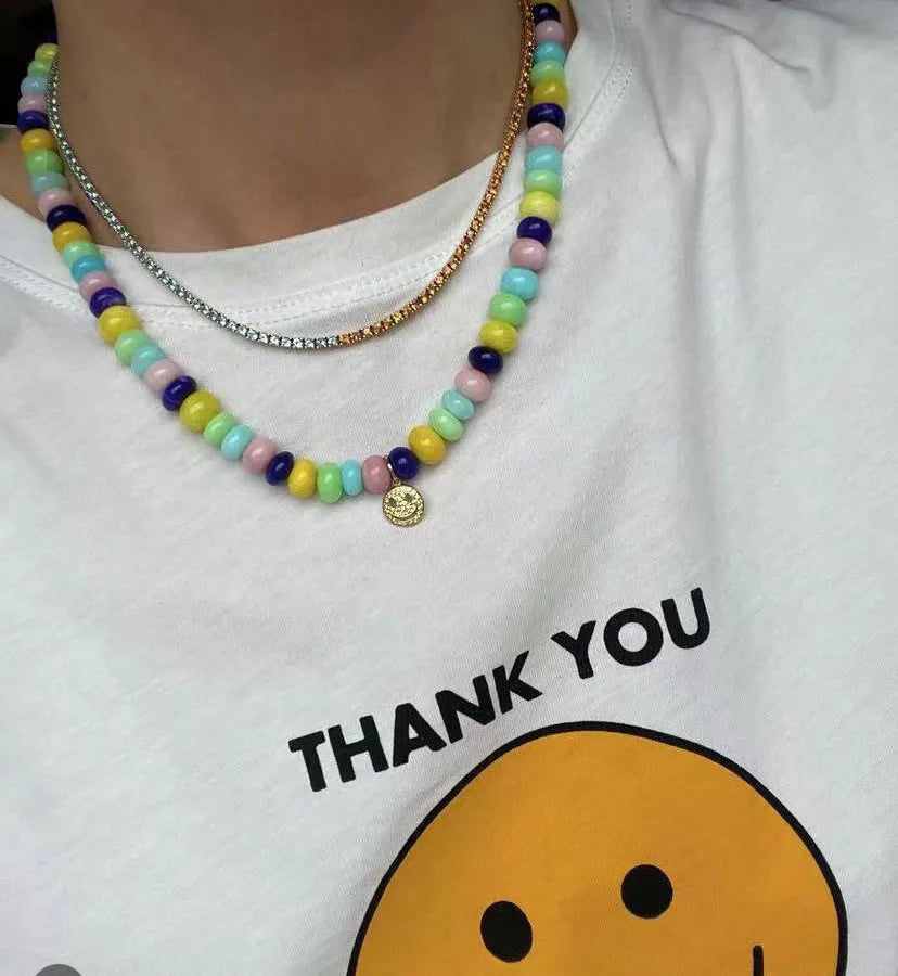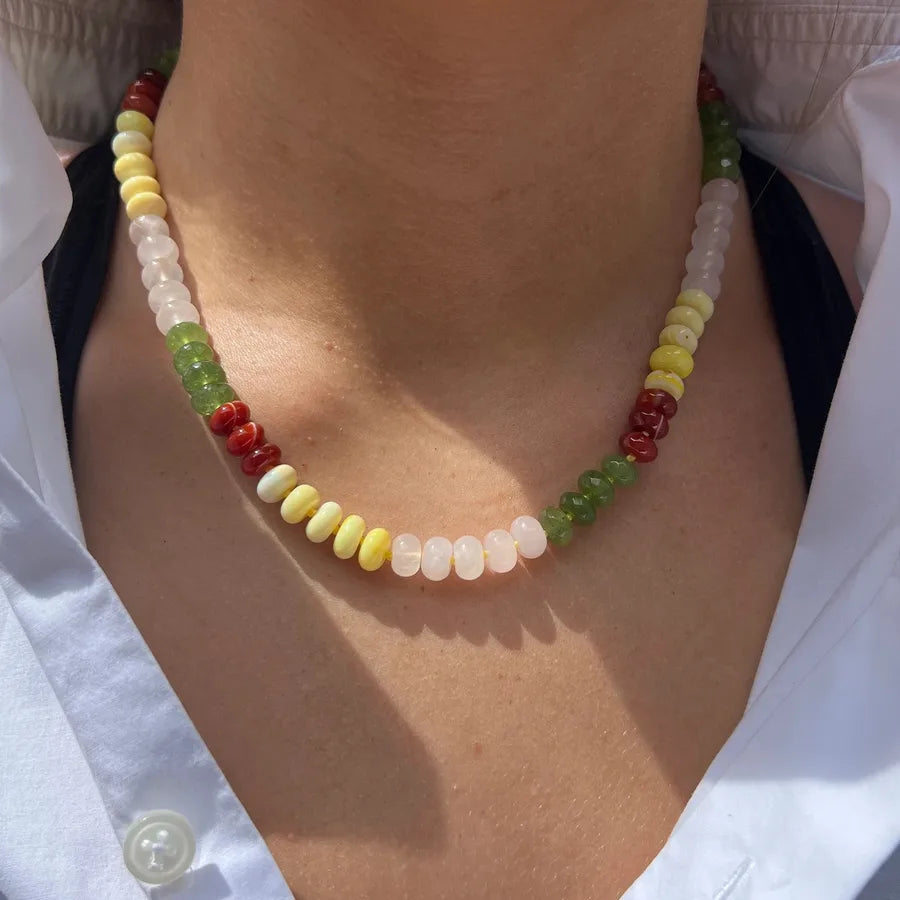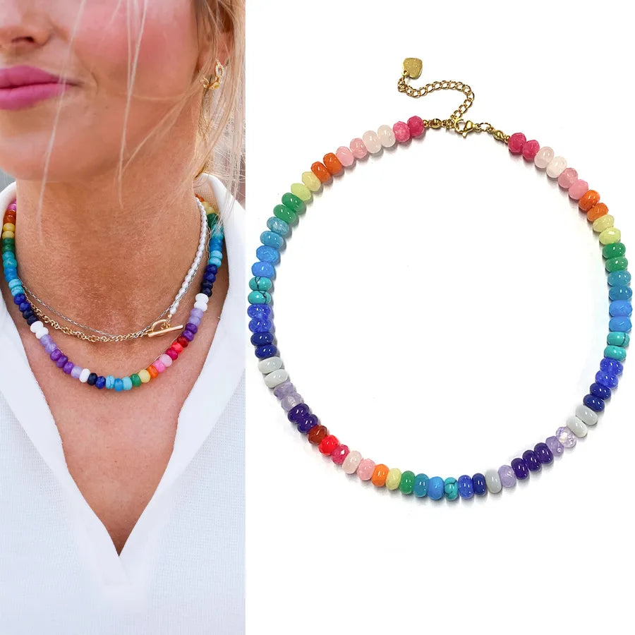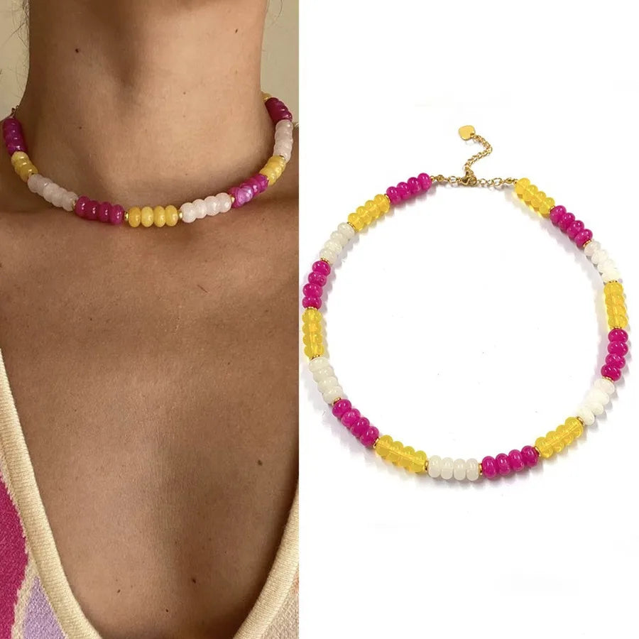 Sweet Geometric natural stone Titanium Steel Necklace In Bulk