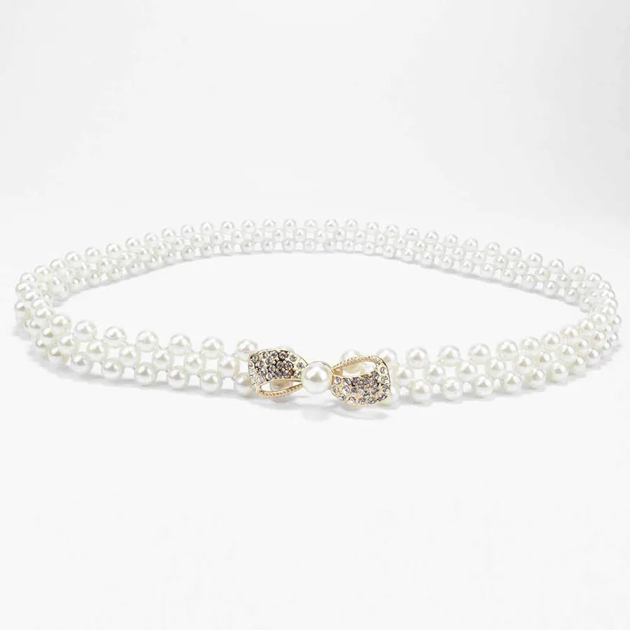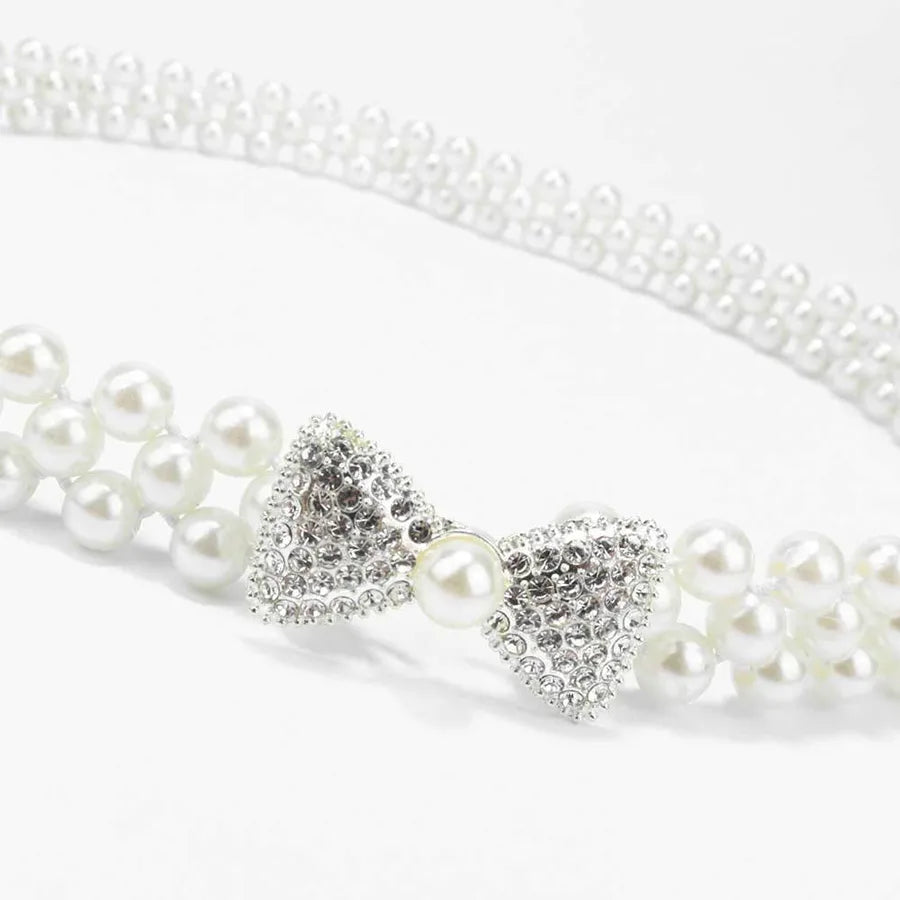 sweet oval flower bow knot imitation pearl metal inlay rhinestones women's chain belts
