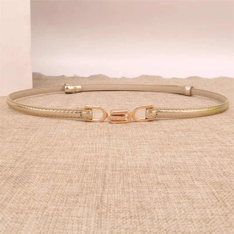 sweet solid color pu leather alloy women's leather belts