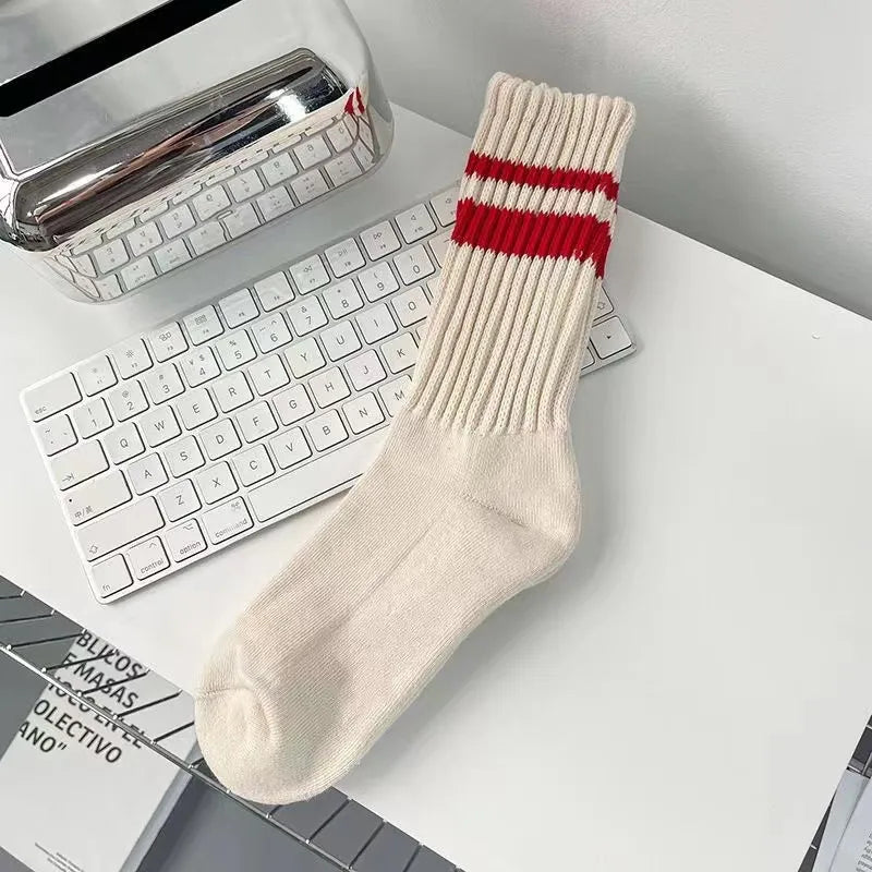 Thick line socks men's mid-calf solid color Japanese retro trendy autumn and winter stockings Sports Basketball American pile long stockings