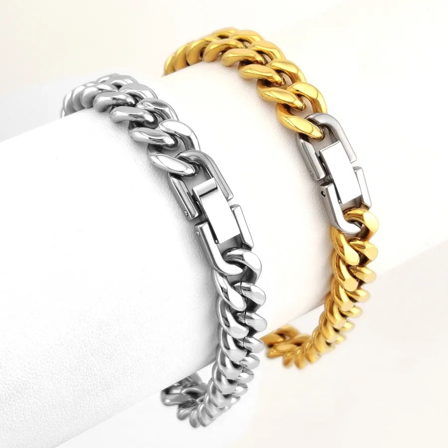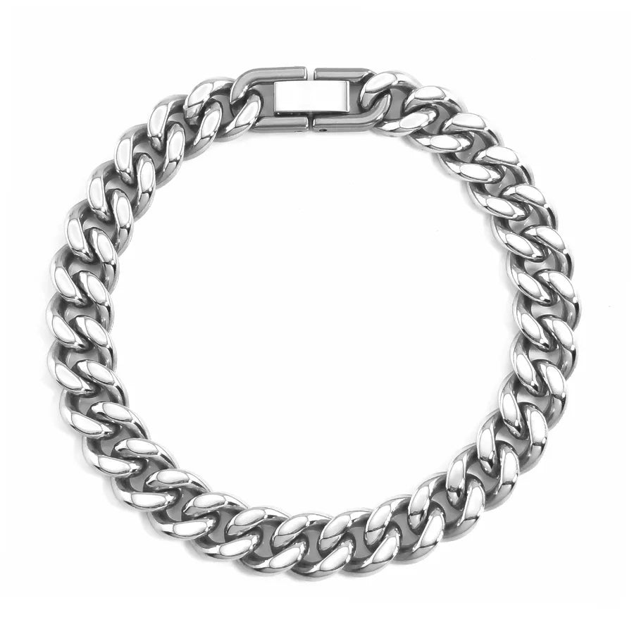 Titanium Steel Cuban Bracelet Men's Fashion Double-Sided Polished Stainless Steel Jewelry Buckle Bracelet Accessories