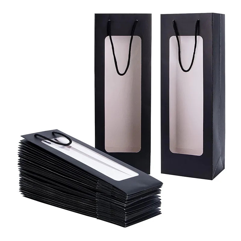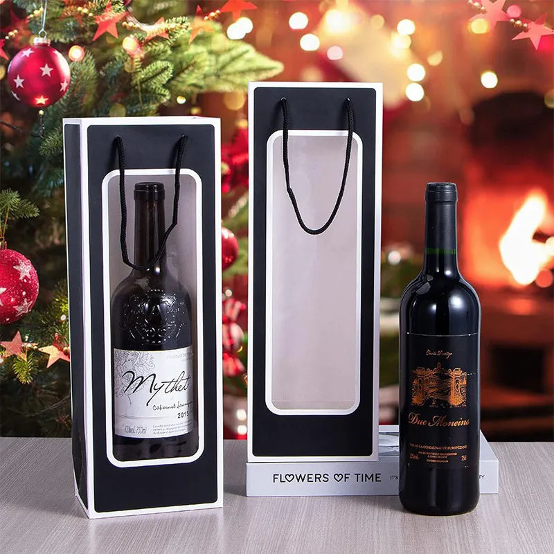 Transparent Window Wine Gift Bag Wedding Banquet Single Wine Packaging Hand Paper Bag Gift Bag in Stock